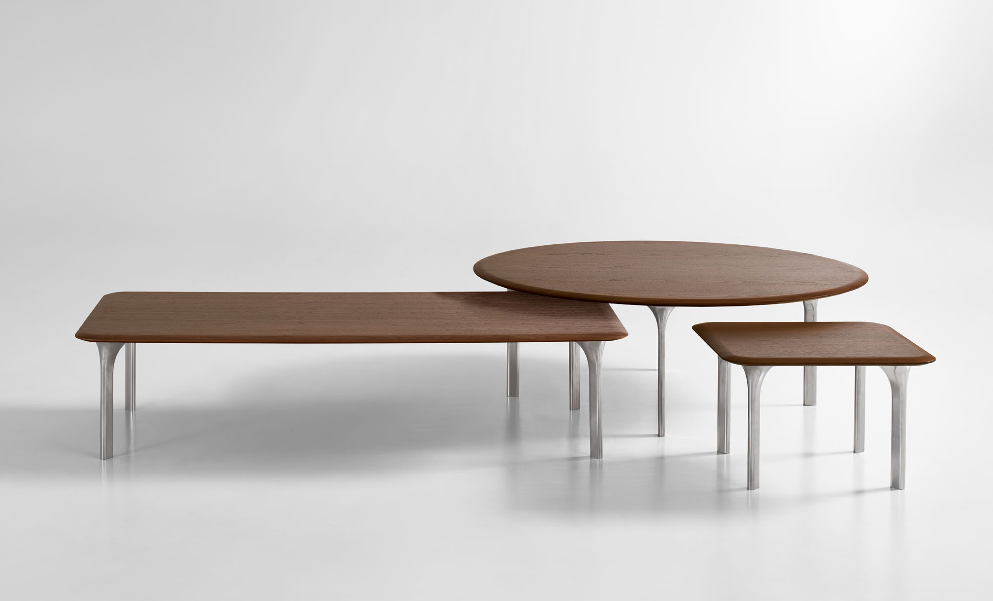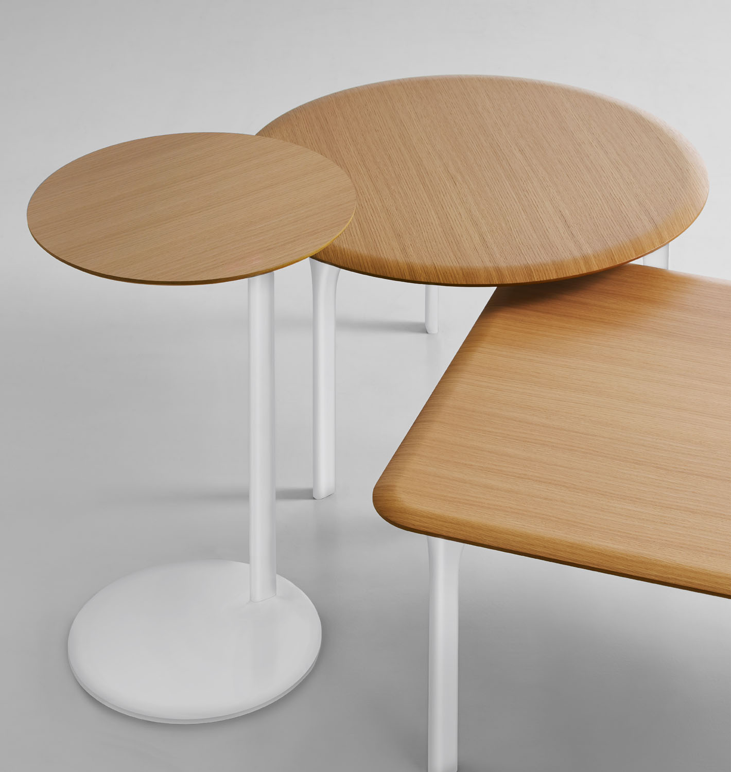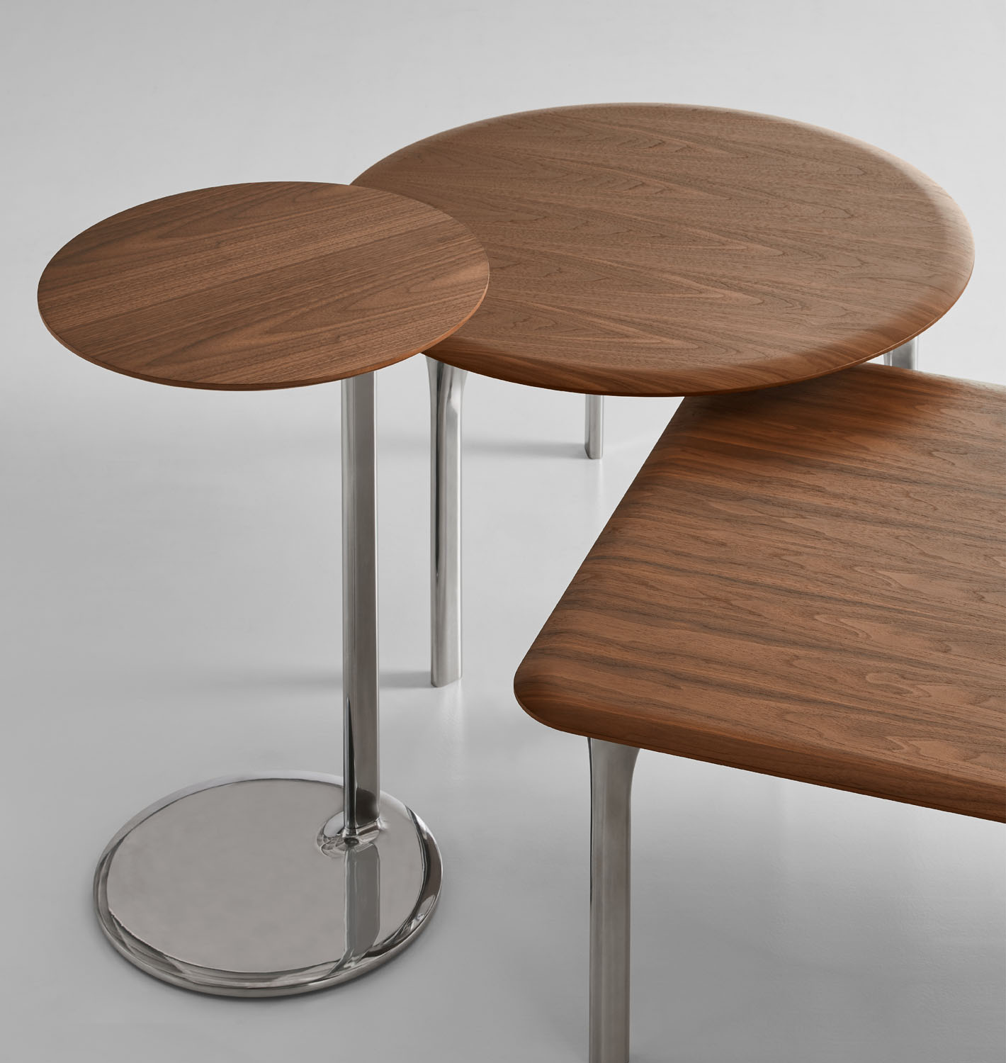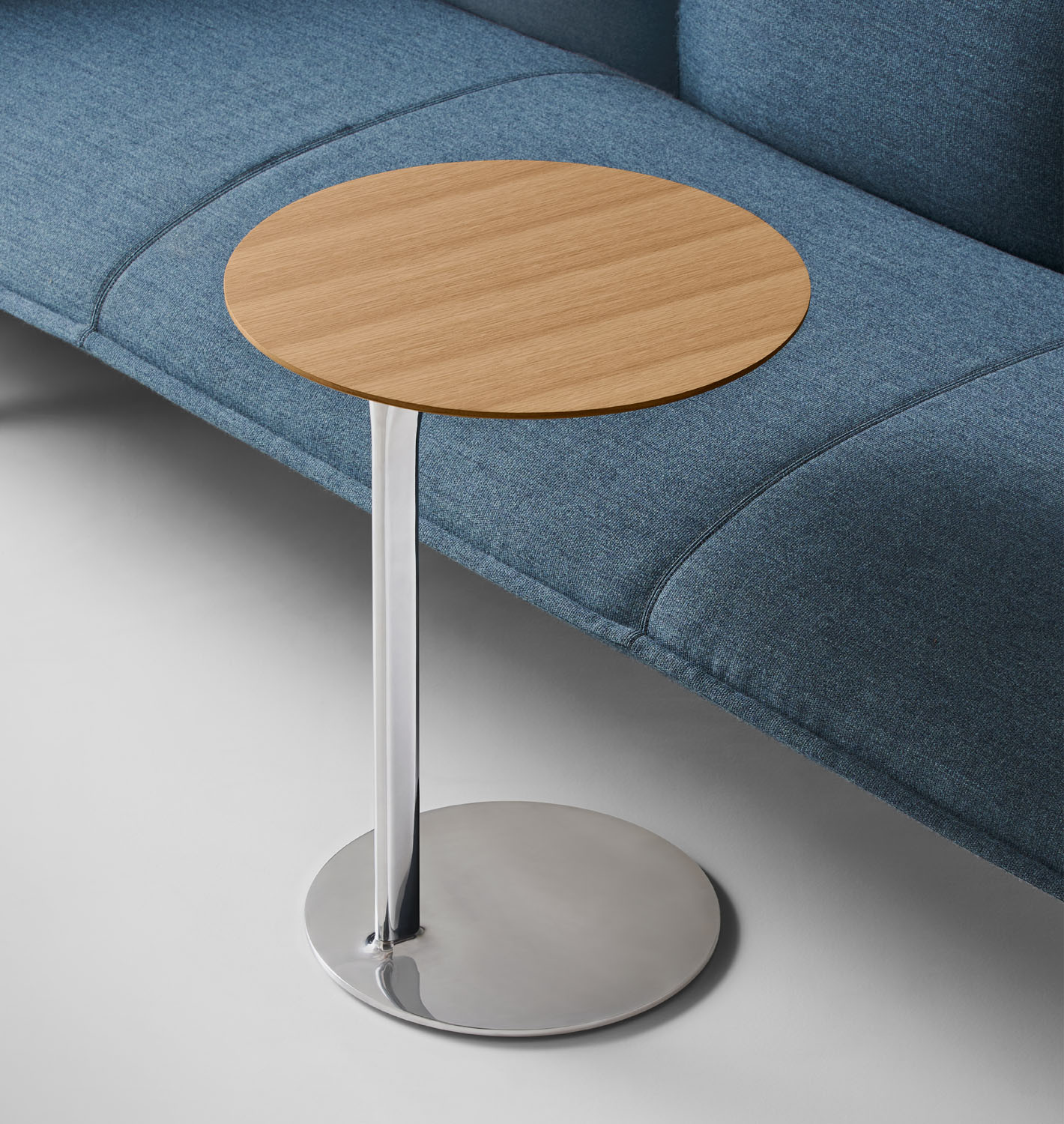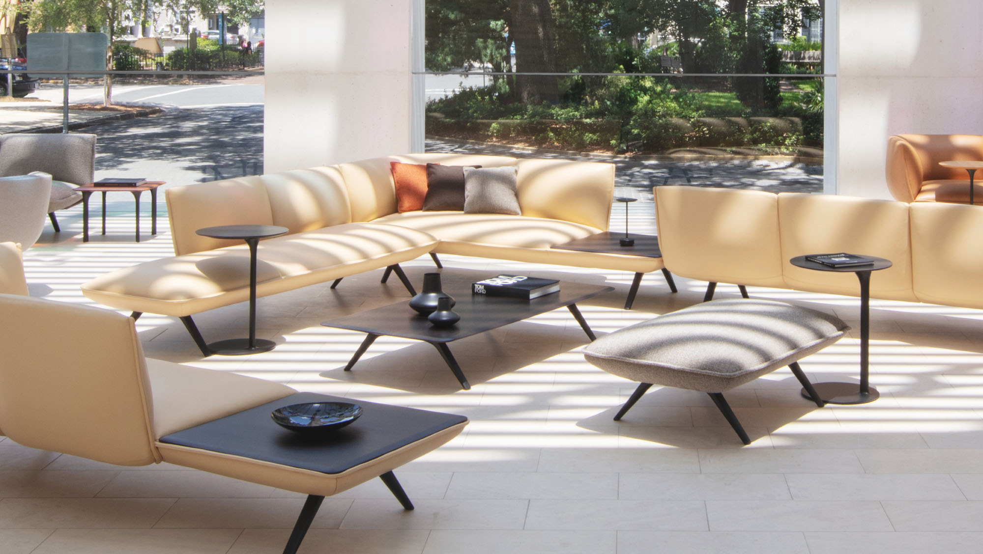 Luca is a collection of occasional and laptop tables designed to function as part of its modular seating system. Luca’s prominent angular legs balance the subtle curves of the tabletops.