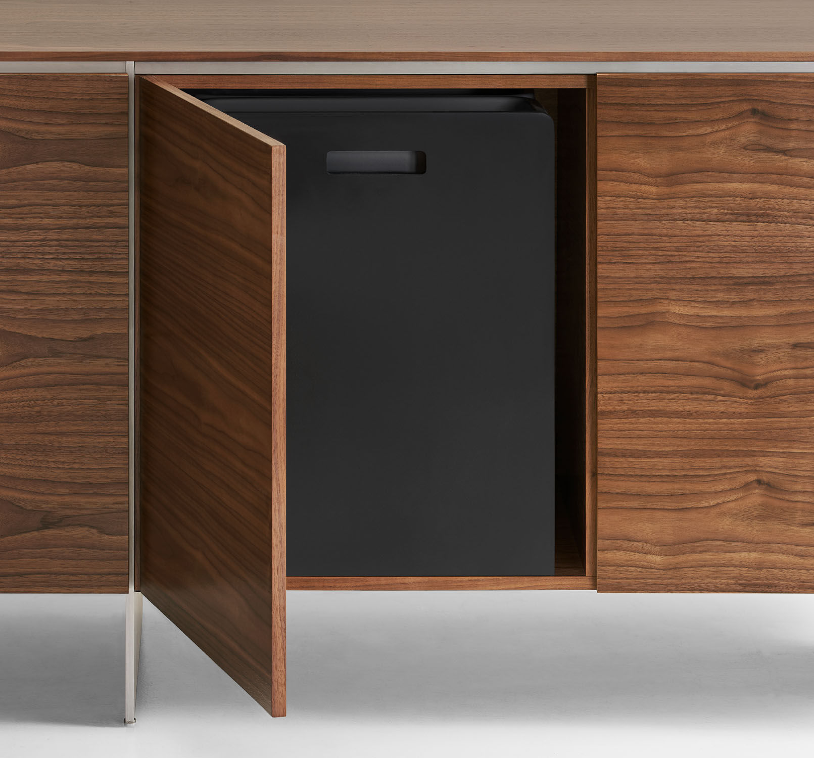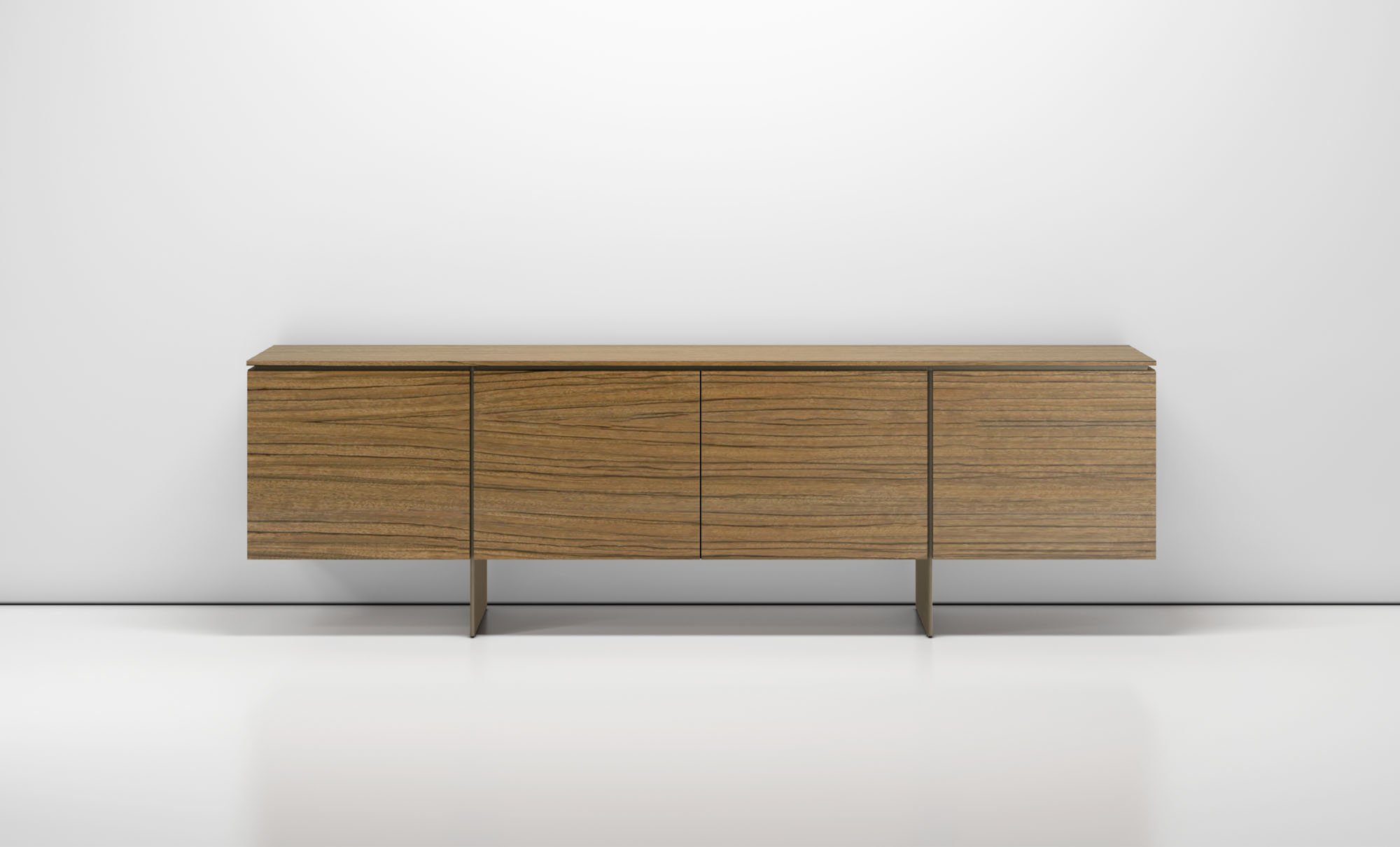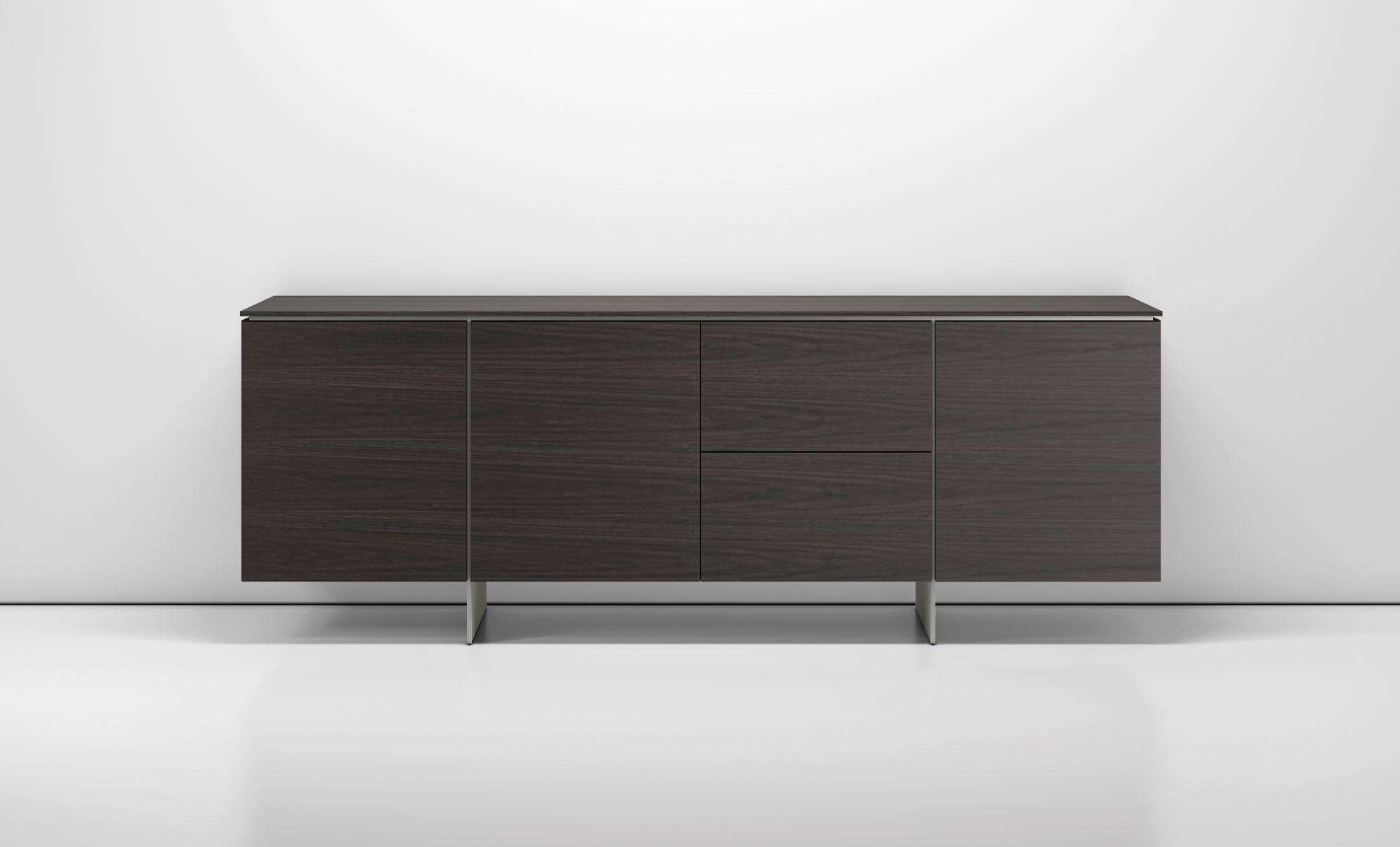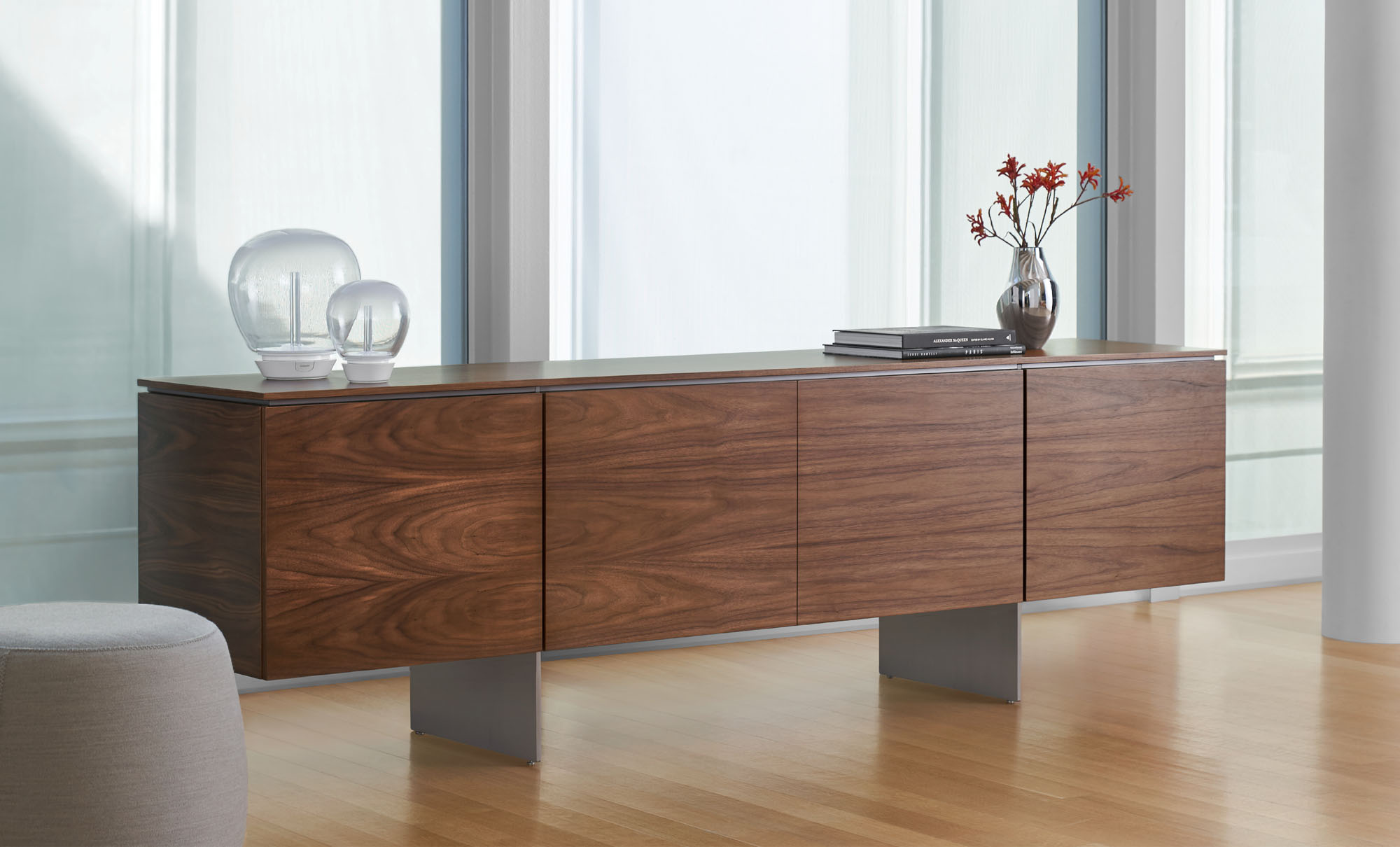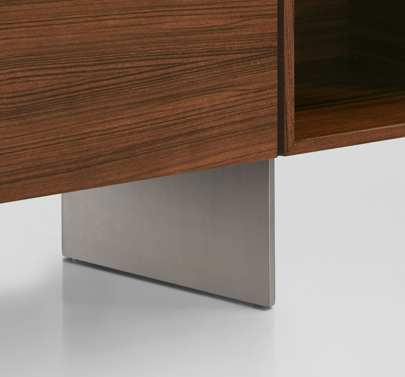 Clean architectural details and a focus on luxe materials allow Matera credenzas to enhance any interior environment. Stainless steel panels allow the credenza to float, creating an attractive aesthetic in open spaces.