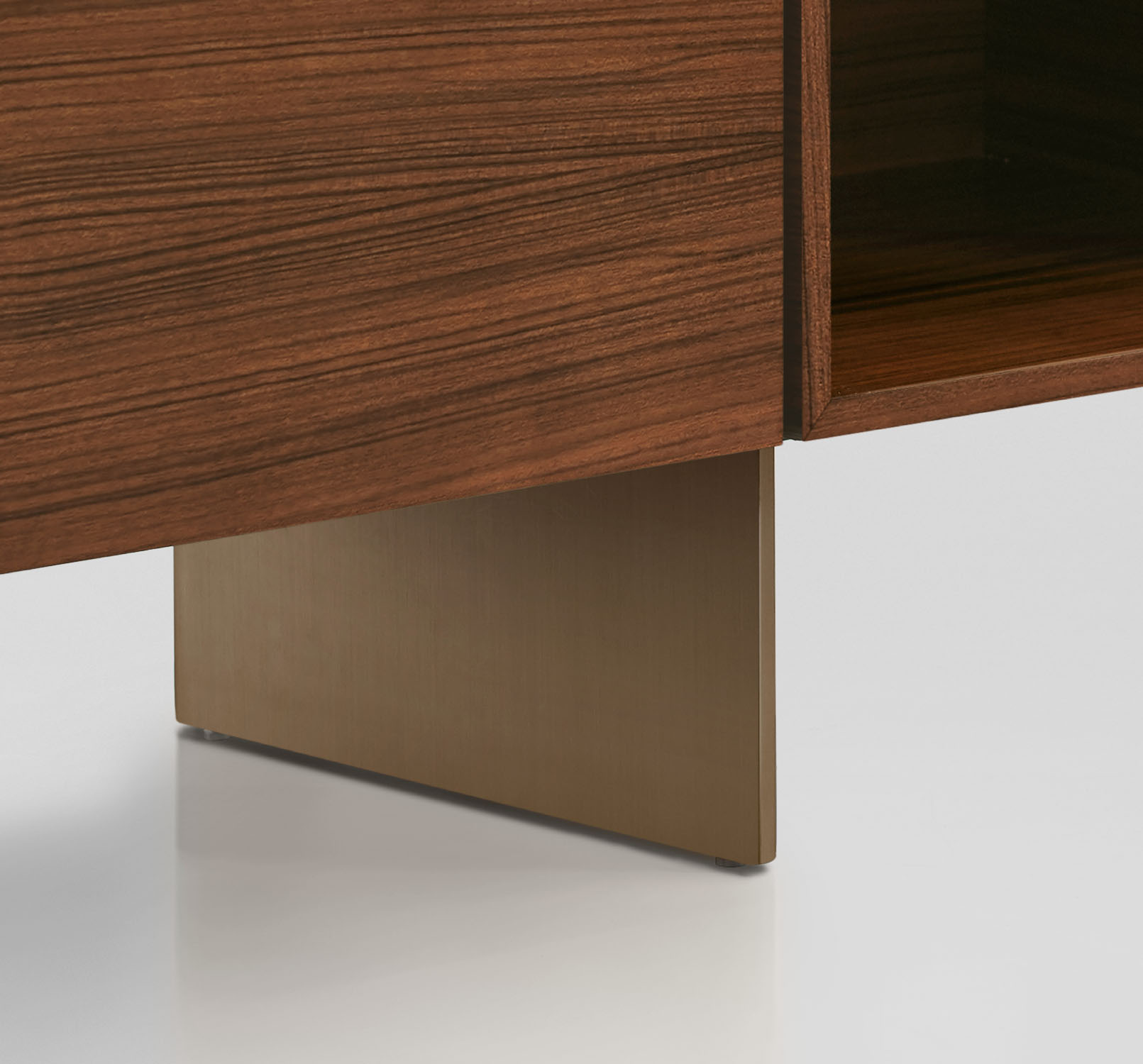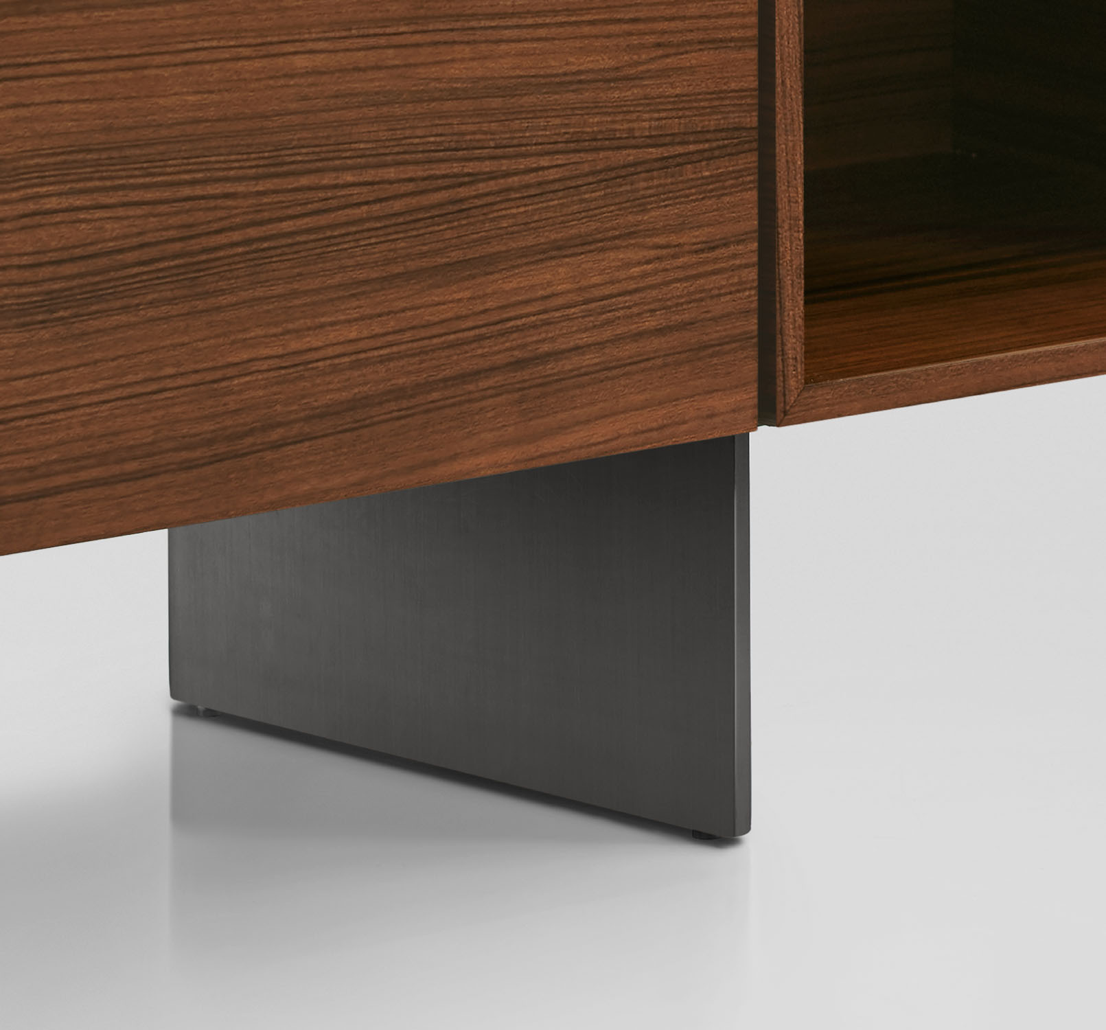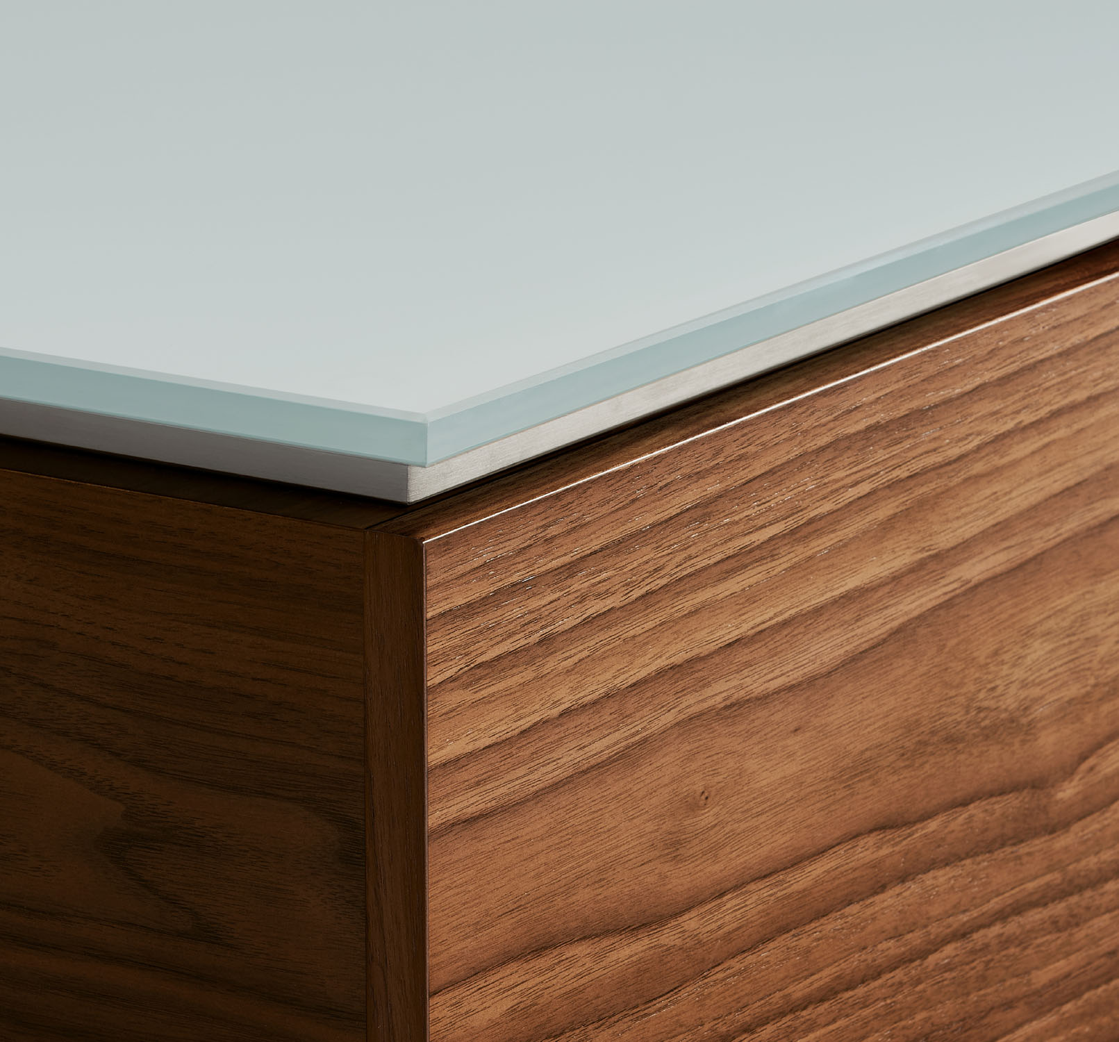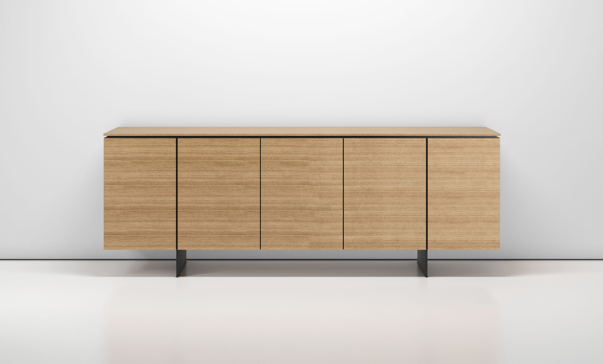 Clean architectural details and a focus on luxe materials allow Matera credenzas to enhance any interior environment. Stainless steel panels allow the credenza to float, creating an attractive aesthetic in open spaces.