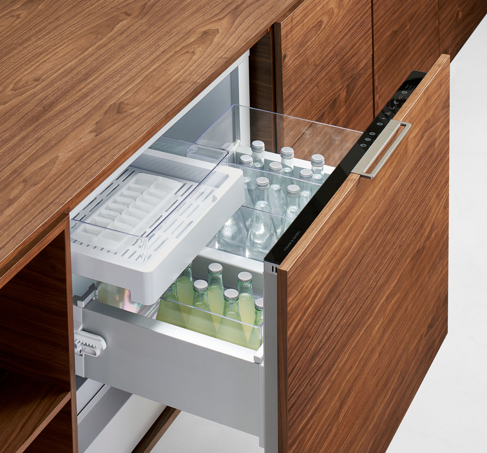 Drawers, Open Shelves, and Refrigerator Unit