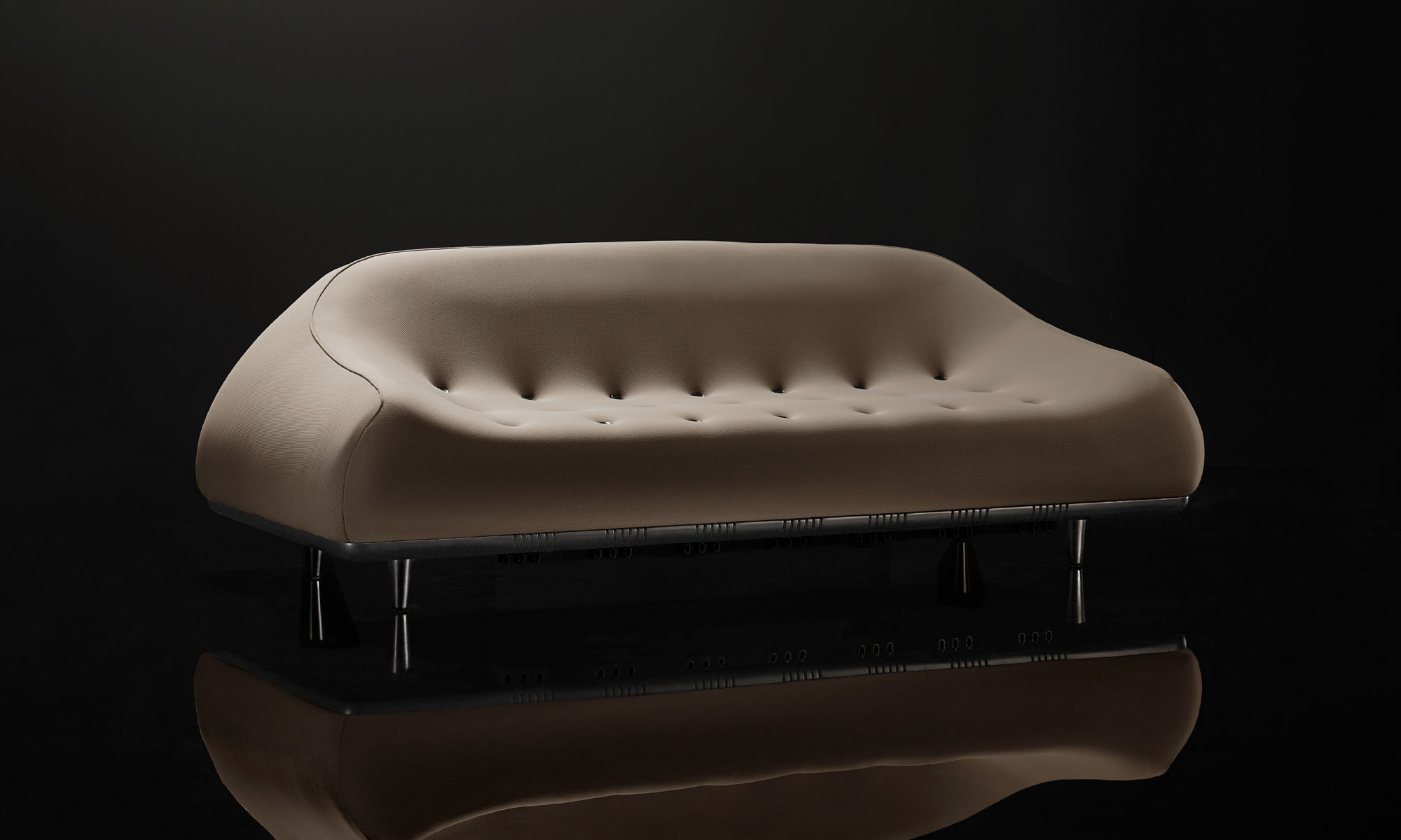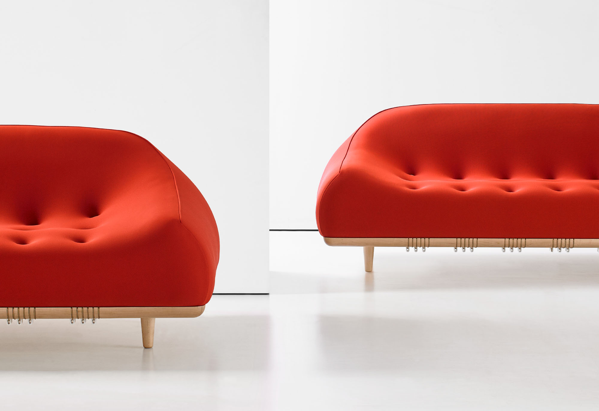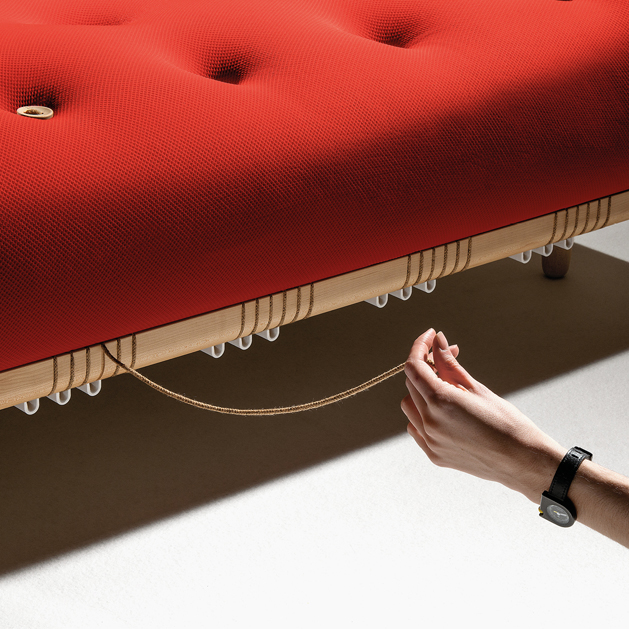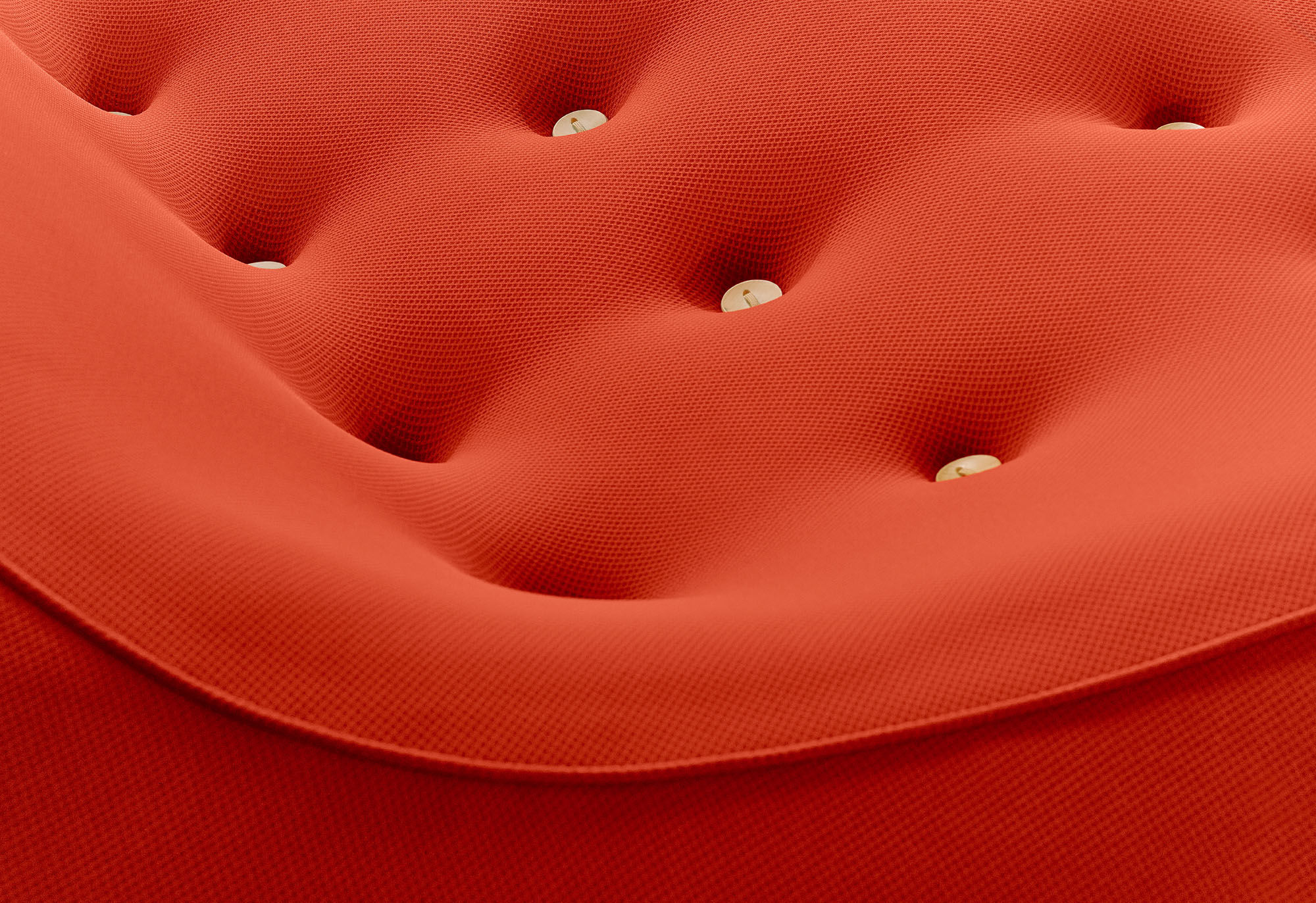 Mellow is a unique product in a sea of mass commercialization, not only in its form but comfort, function, and craft details. The sofa features handcrafted wood buttons that are incorporated into an adjustable cord system, which allows the user to change the sofa’s shape and feel. Mellow is draped in a custom textile that requires only one seam, while multiple layers of memory foam in varying densities contribute to its remarkable comfort.