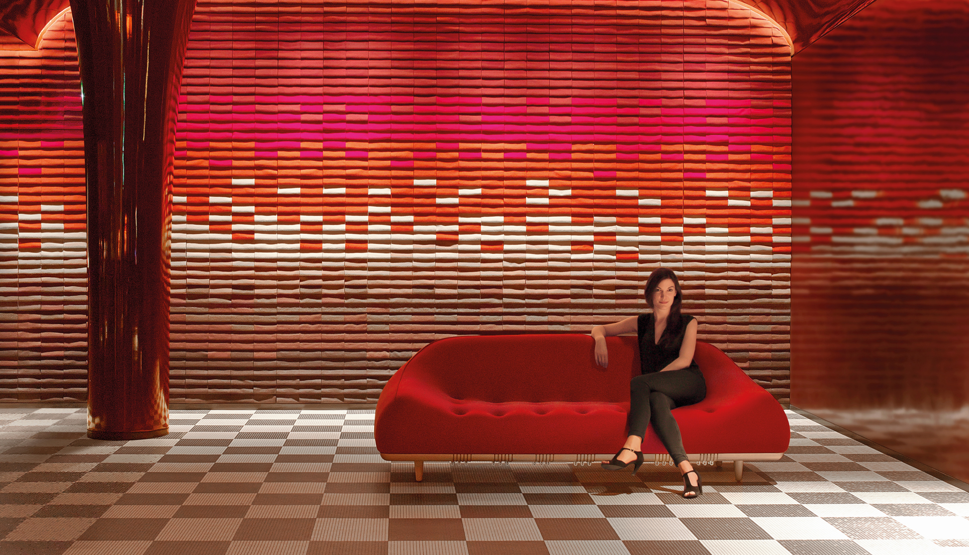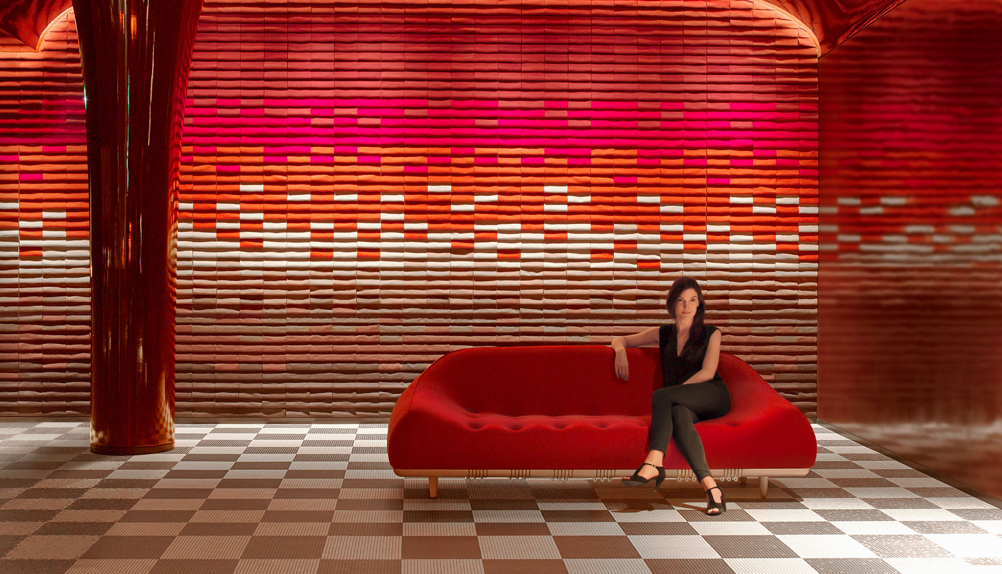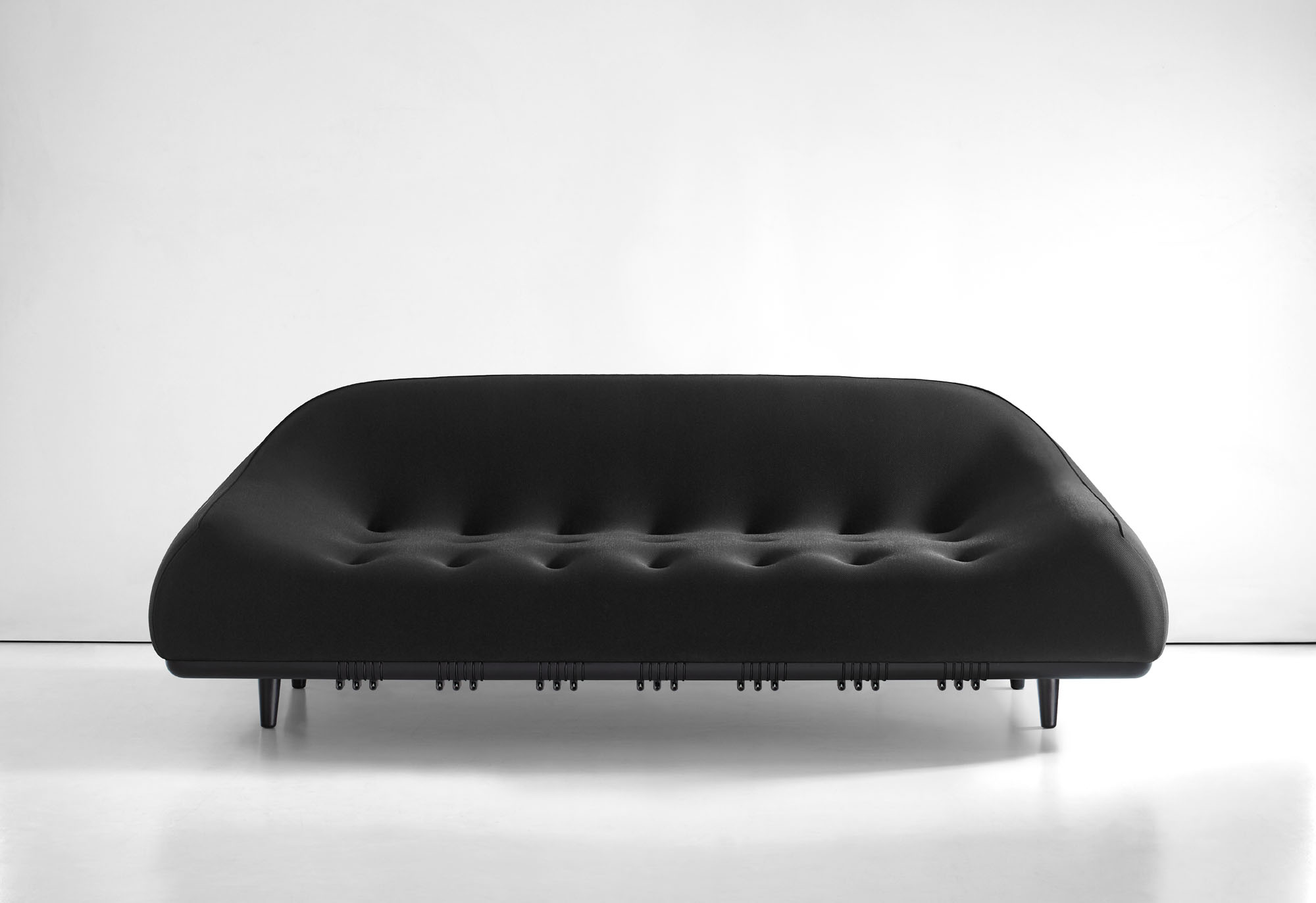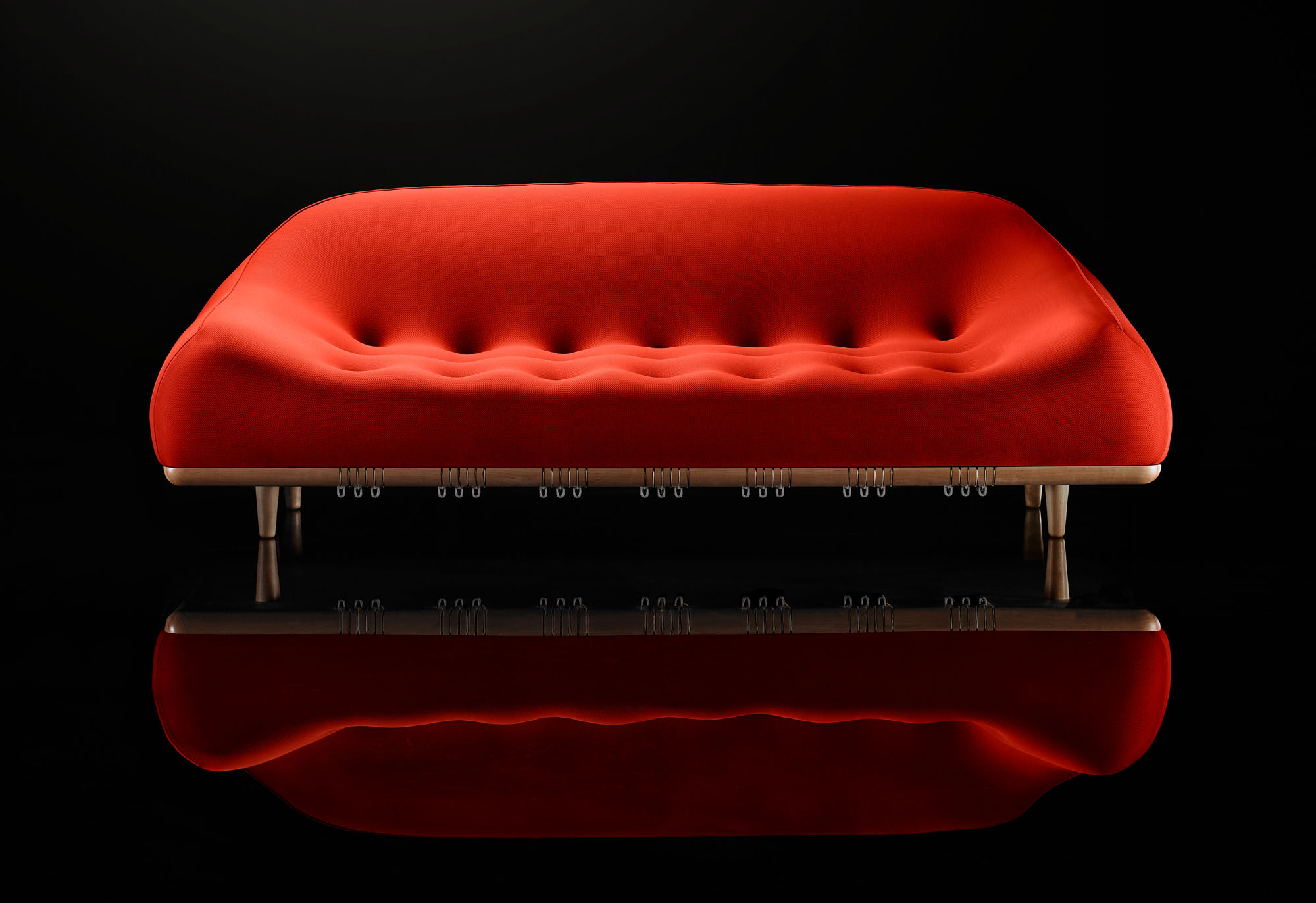 Mellow is a unique product in a sea of mass commercialization, not only in its form but comfort, function, and craft details. The sofa features handcrafted wood buttons that are incorporated into an adjustable cord system, which allows the user to change the sofa’s shape and feel. Mellow is draped in a custom textile that requires only one seam, while multiple layers of memory foam in varying densities contribute to its remarkable comfort.