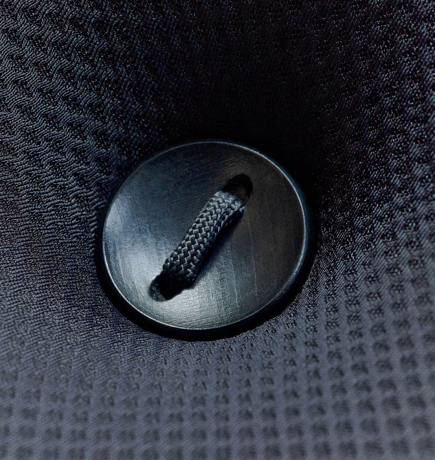 The buttons and cords are arranged in a geometric grid and are connected to self-locking cam cleats.