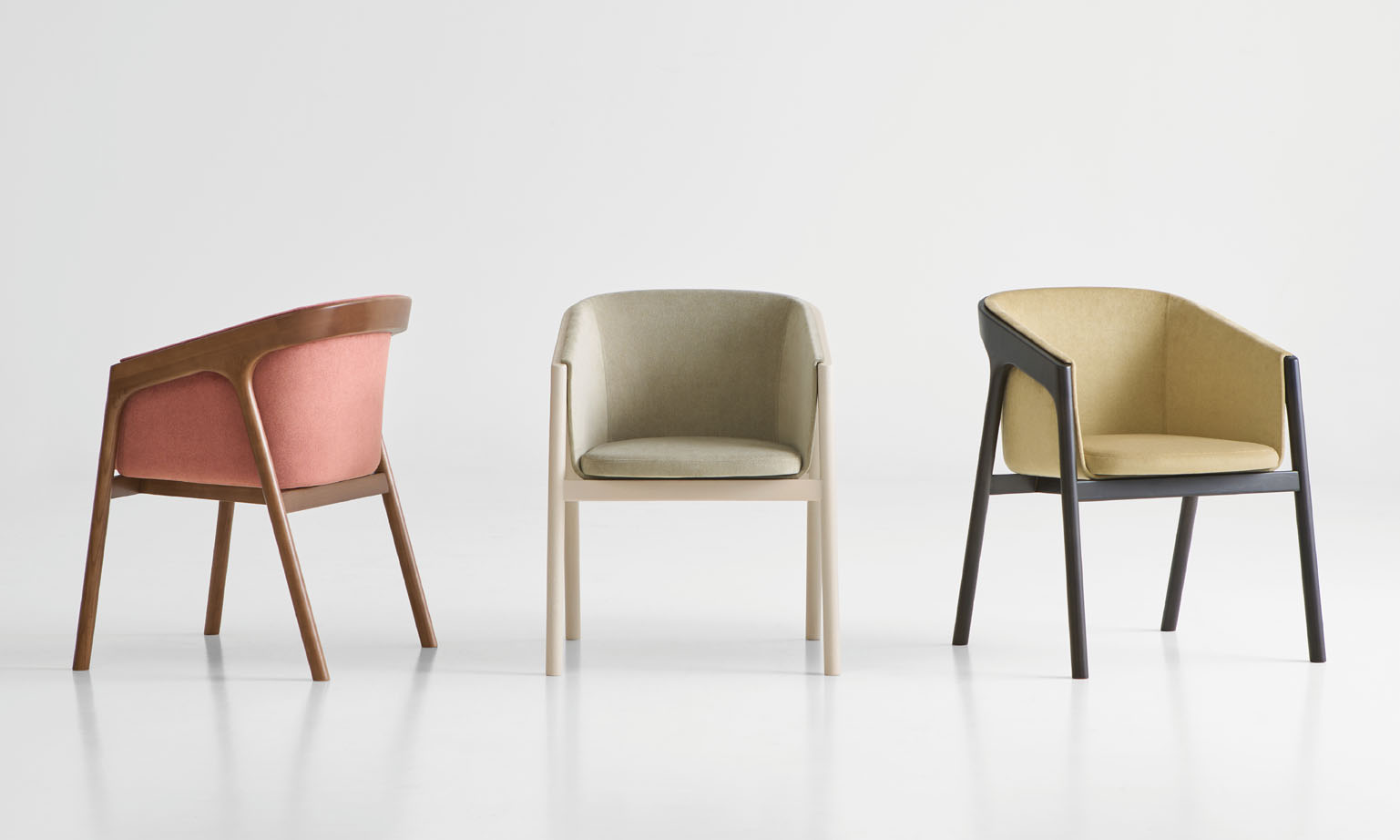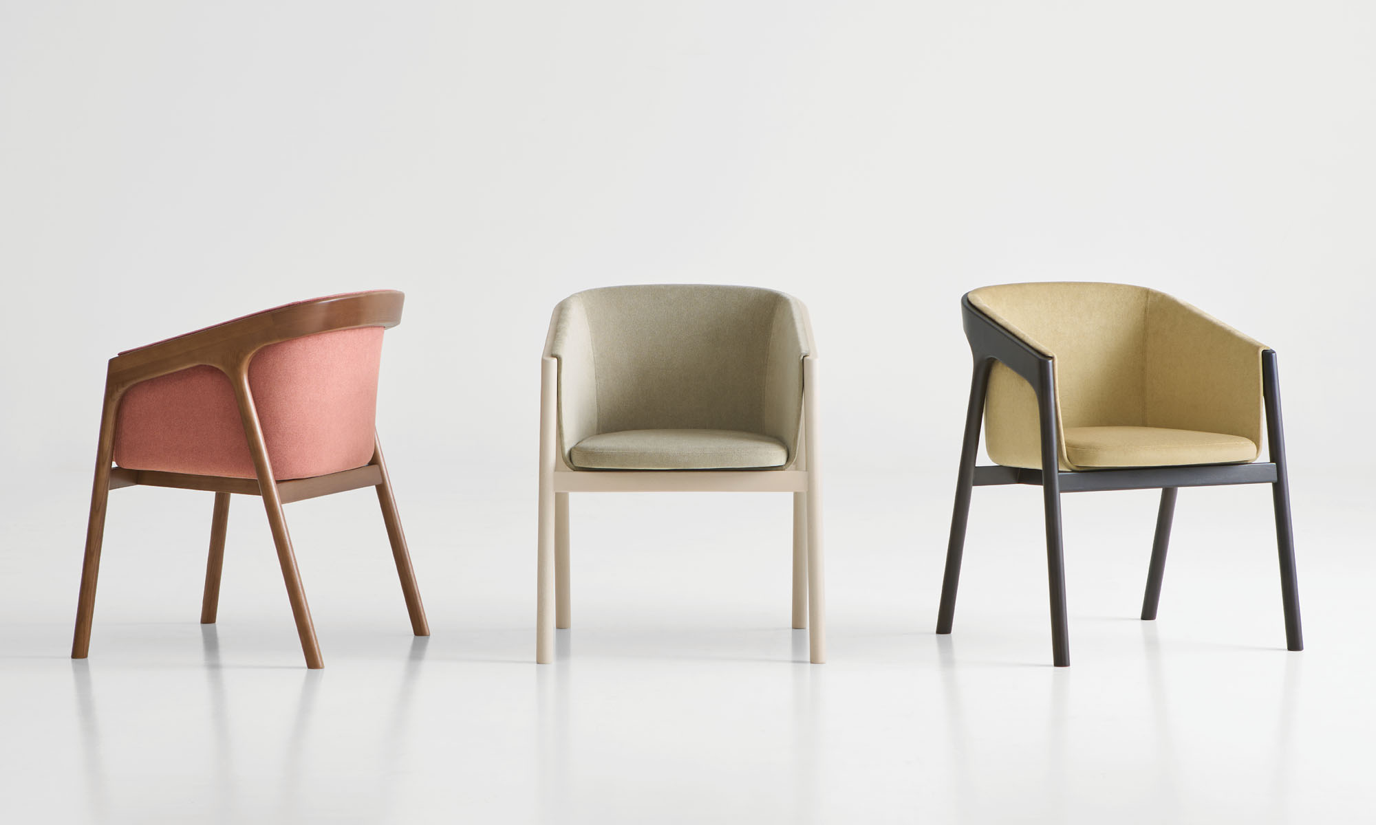 Contrasting textiles and leathers may be used for the seat cushion and shell.
