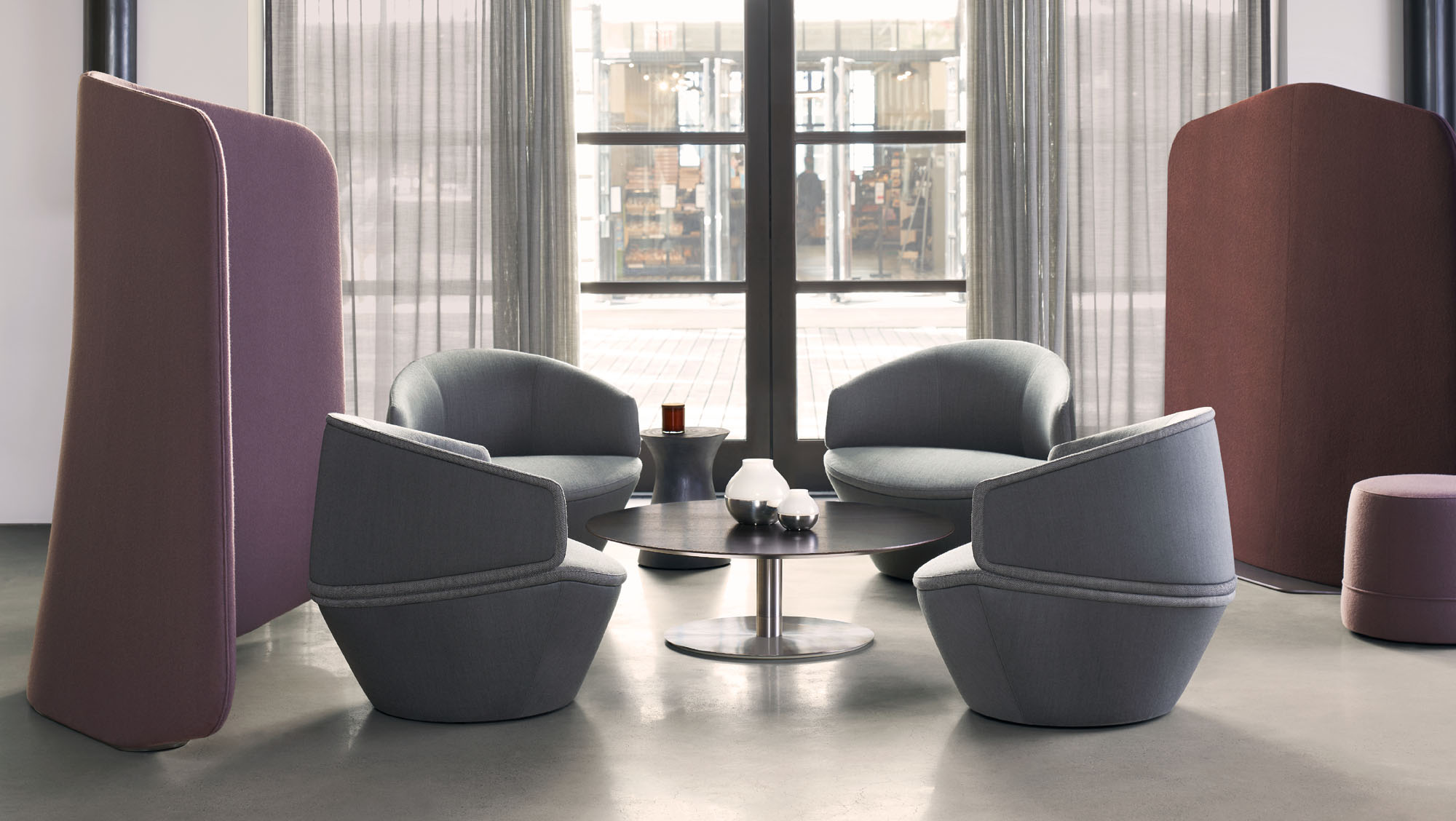 Nico’s self-return swivel allows the user to turn, engage, and converse with others.