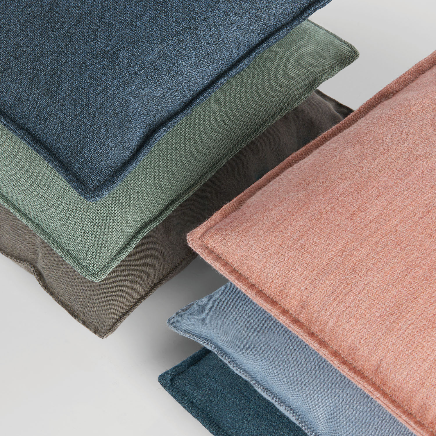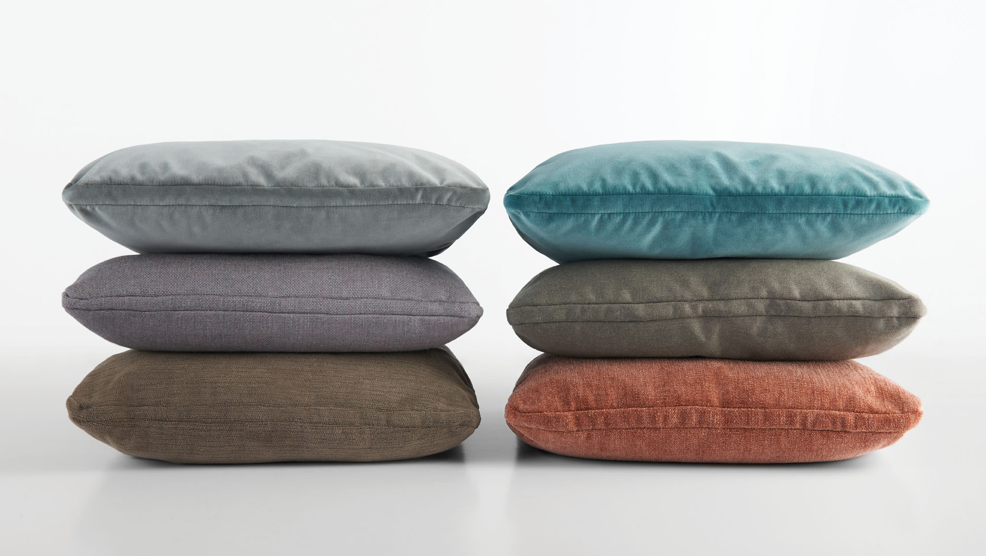 Alpha Pillows are knife-edged and available in multiple types and sizes: square, rectangular, and bolster.