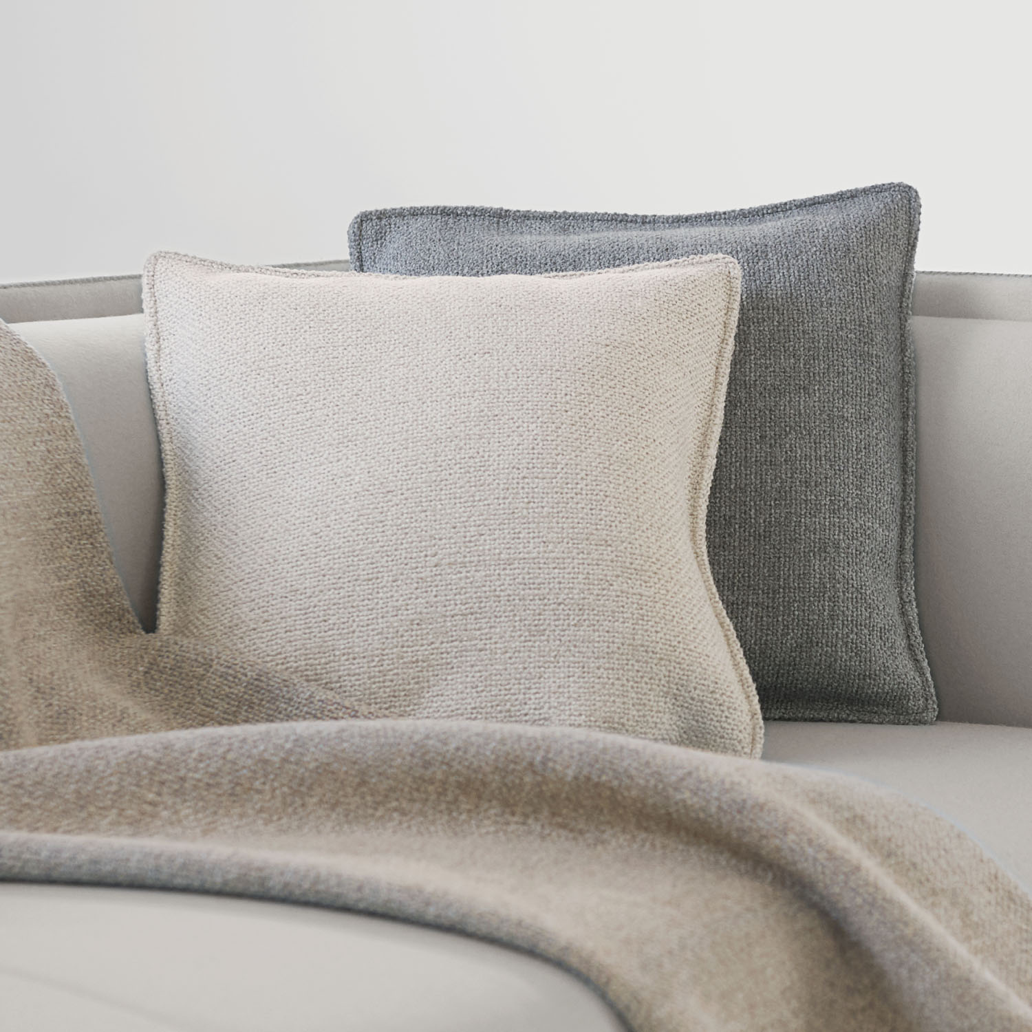 Beta Pillows, square with a ½” flat panel border, are available in two sizes.