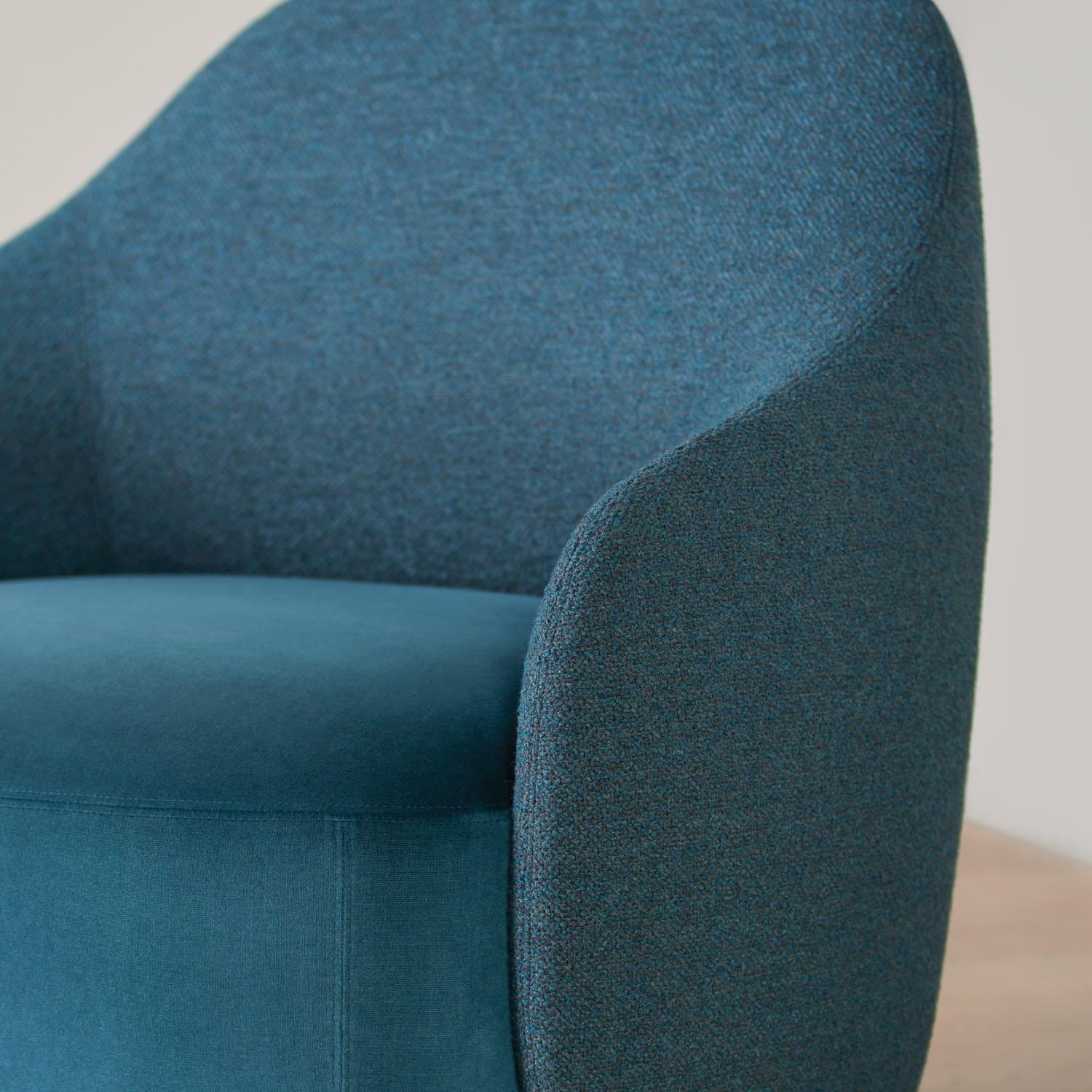 Contrasting textiles for the back and seat also present customizable options for varied aesthetics.
