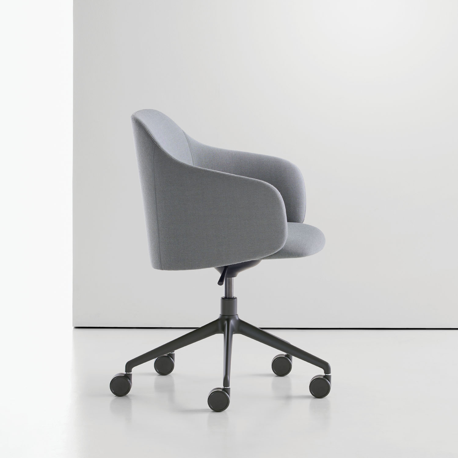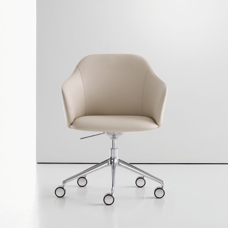Prelude’s five-star base is available in polished aluminum or powder coat colors. The chair features a swivel tilt mechanism and pneumatic lift for height adjustment.