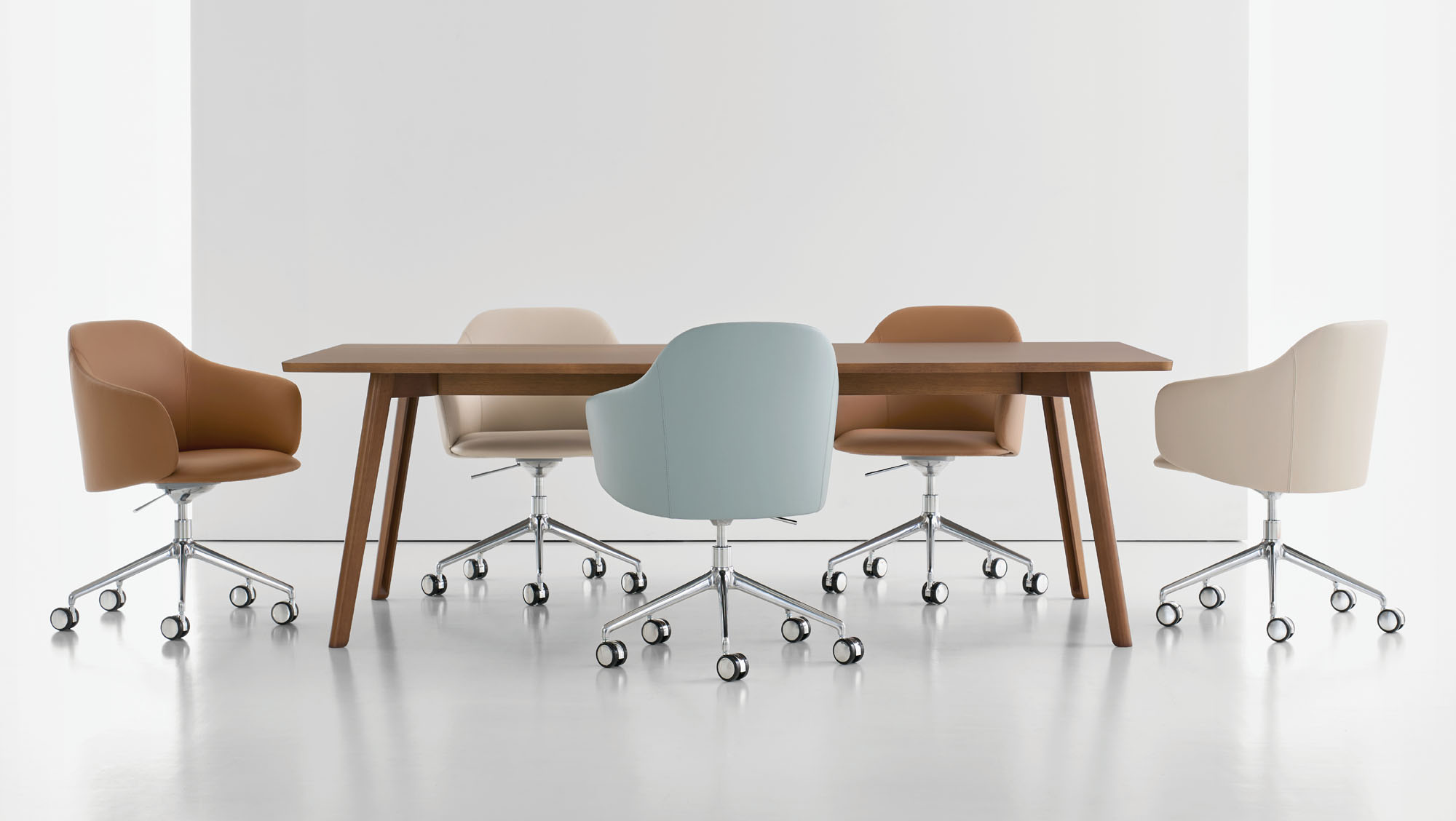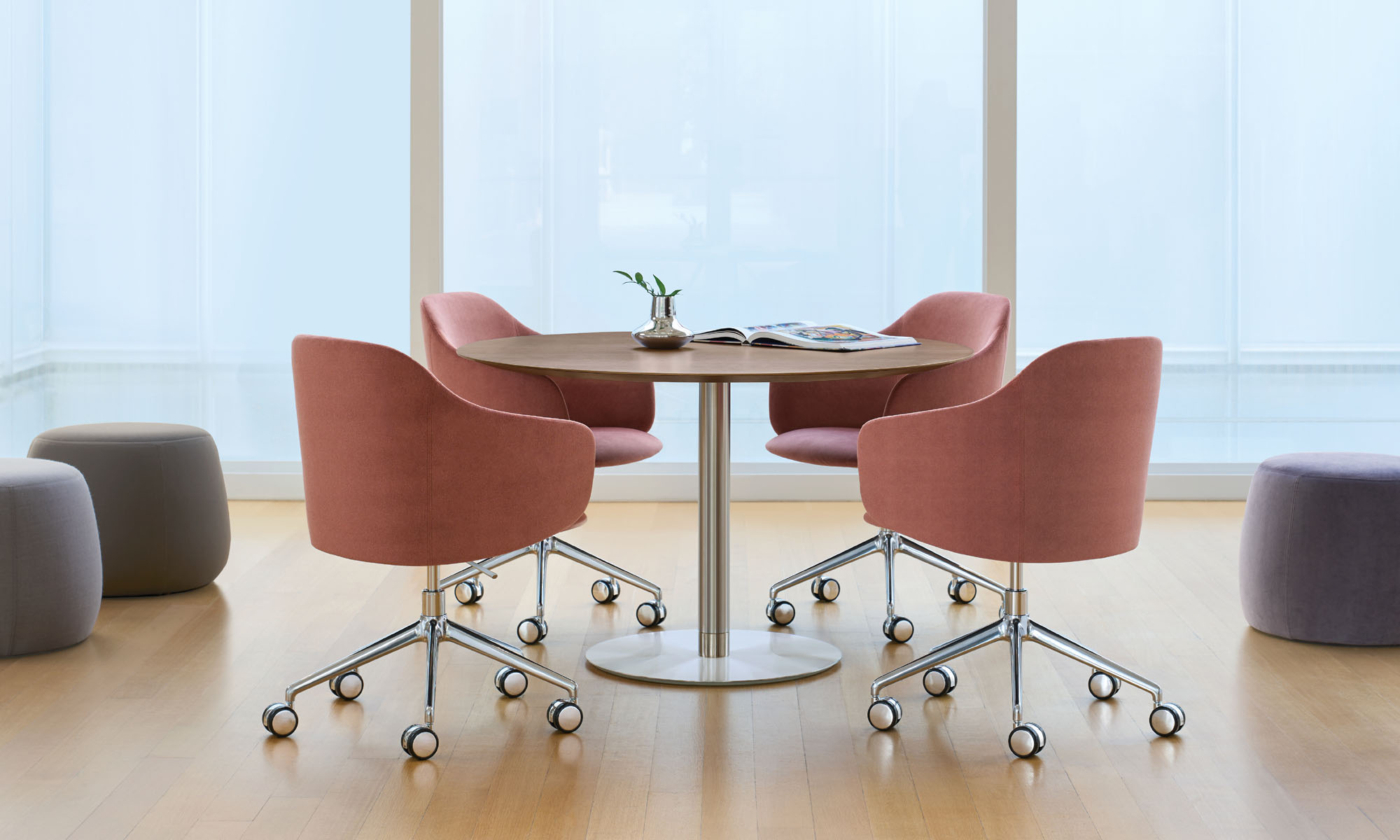 Prelude is a family of guest and conference chairs, defined by flowing contours and the visual illusion of a gracefully draping shawl, which creates an unexpected profile. Soft curves and a compact scale make it ideal for home offices, cafes, and small meeting rooms.