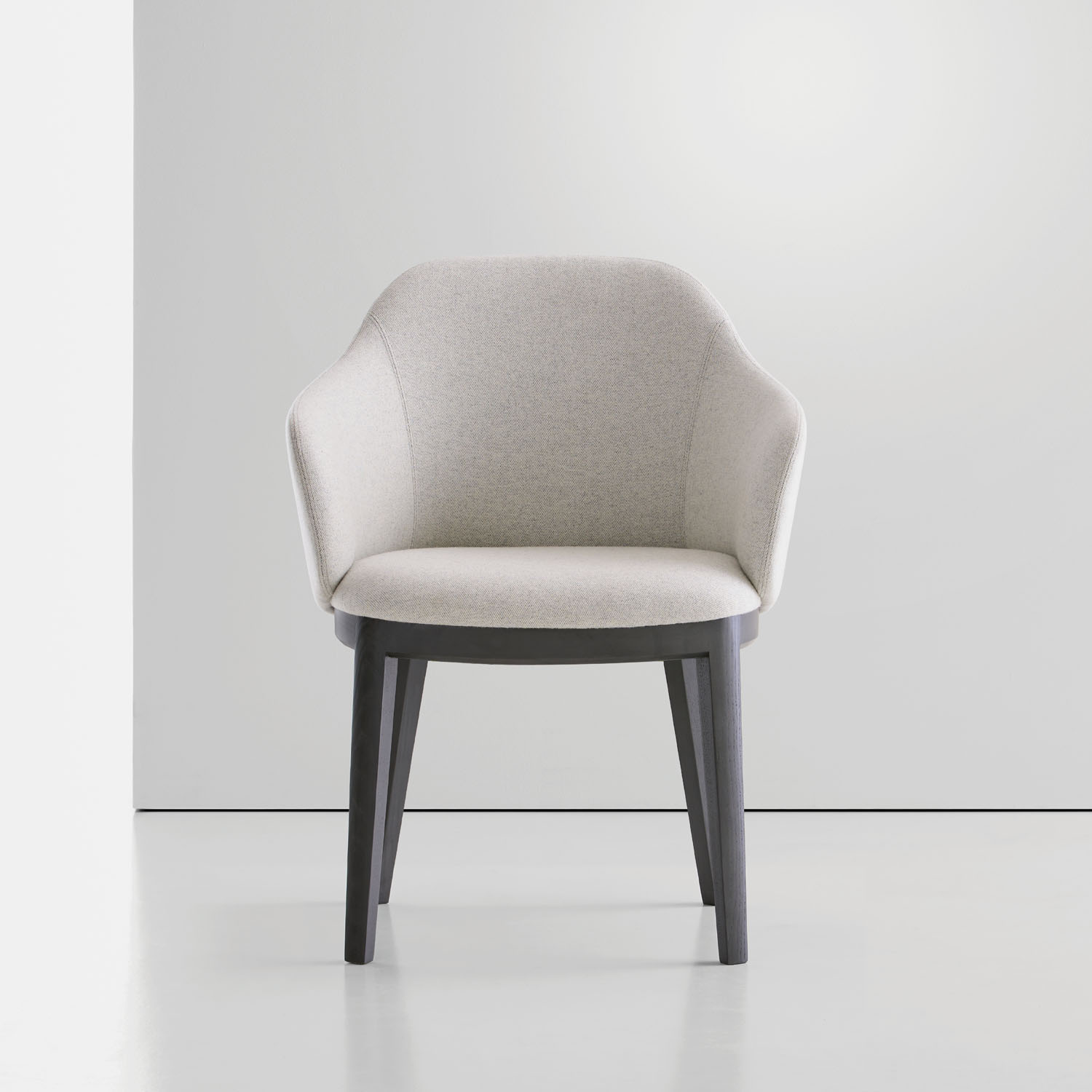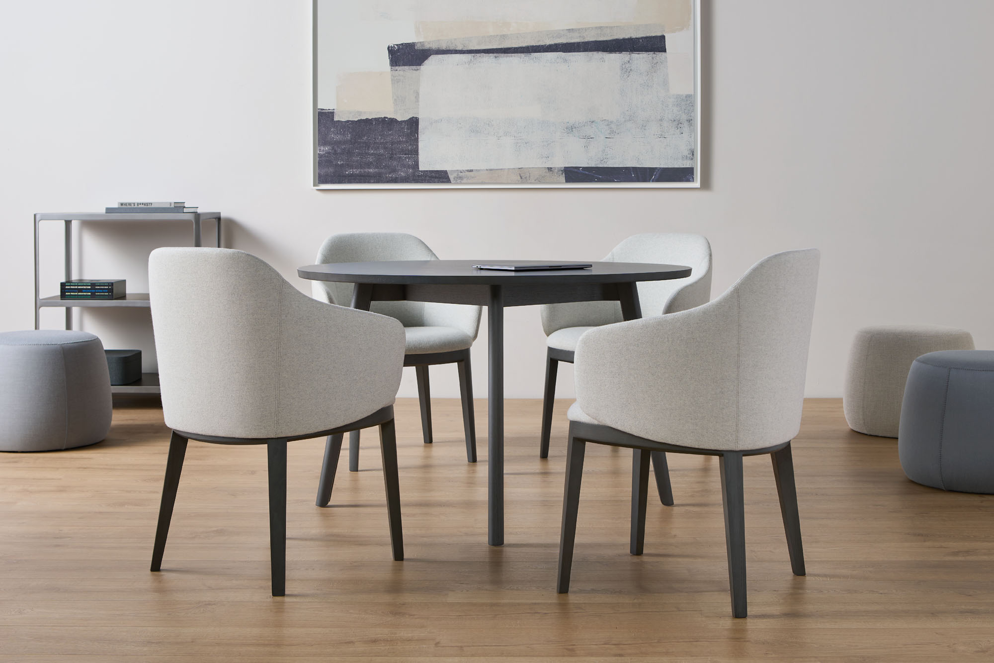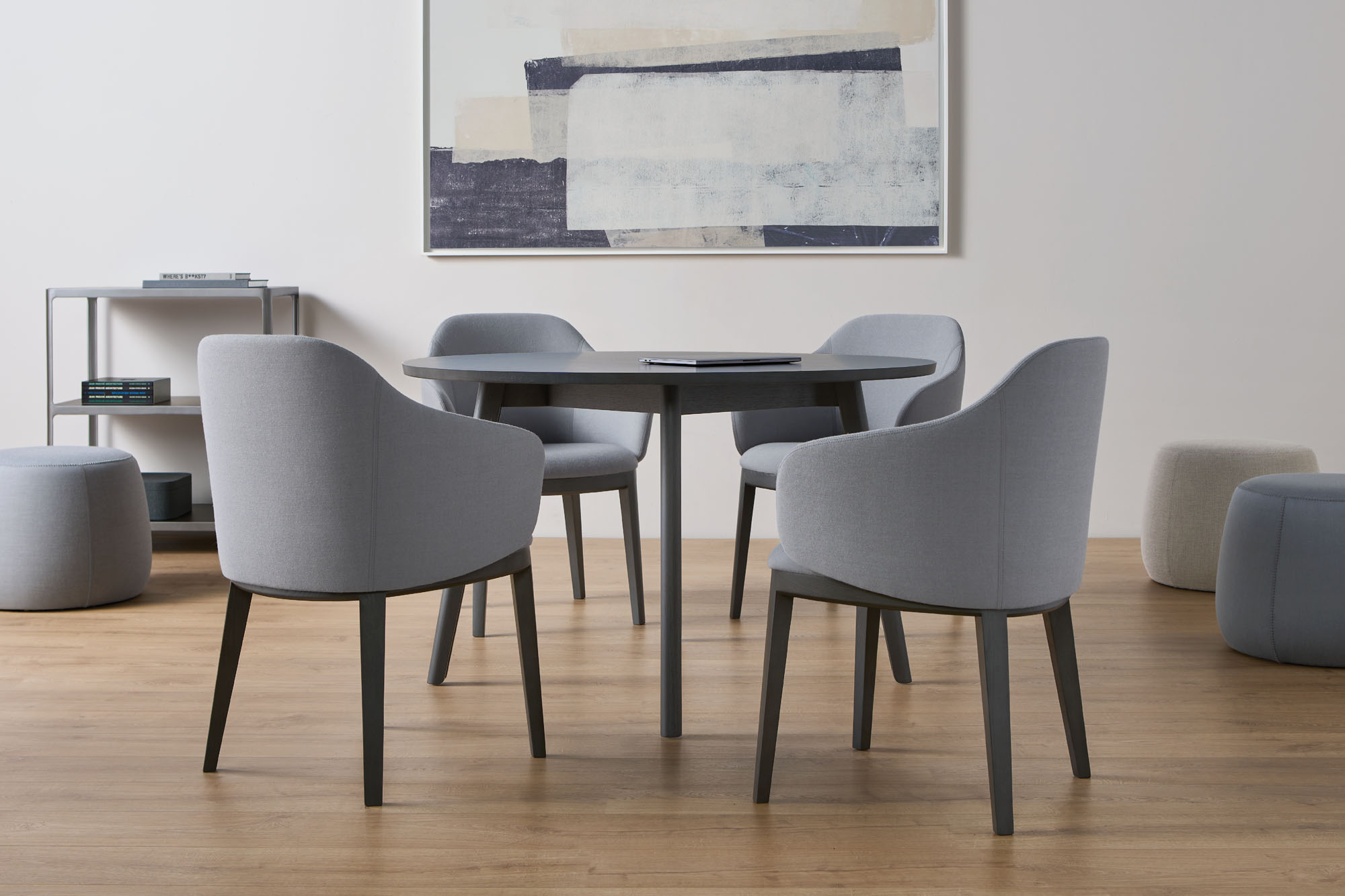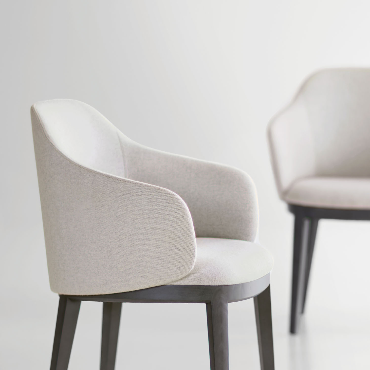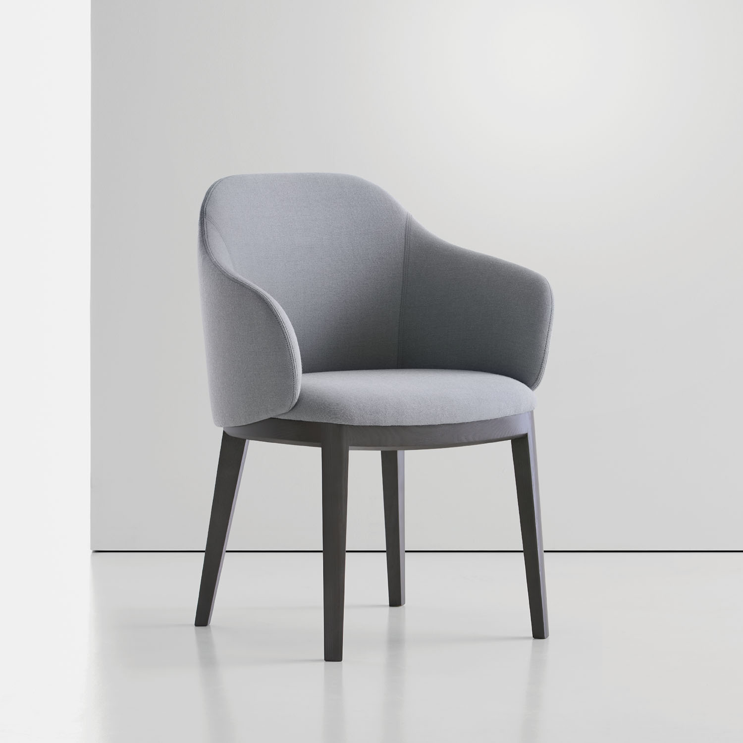 Part of an extensive family of seating, Prelude wood-guest chair is defined by flowing contours and the visual illusion of a gracefully draping shawl, which creates an unexpected profile. Soft curves and a compact scale make it ideal for home offices, cafes, and small meeting rooms.