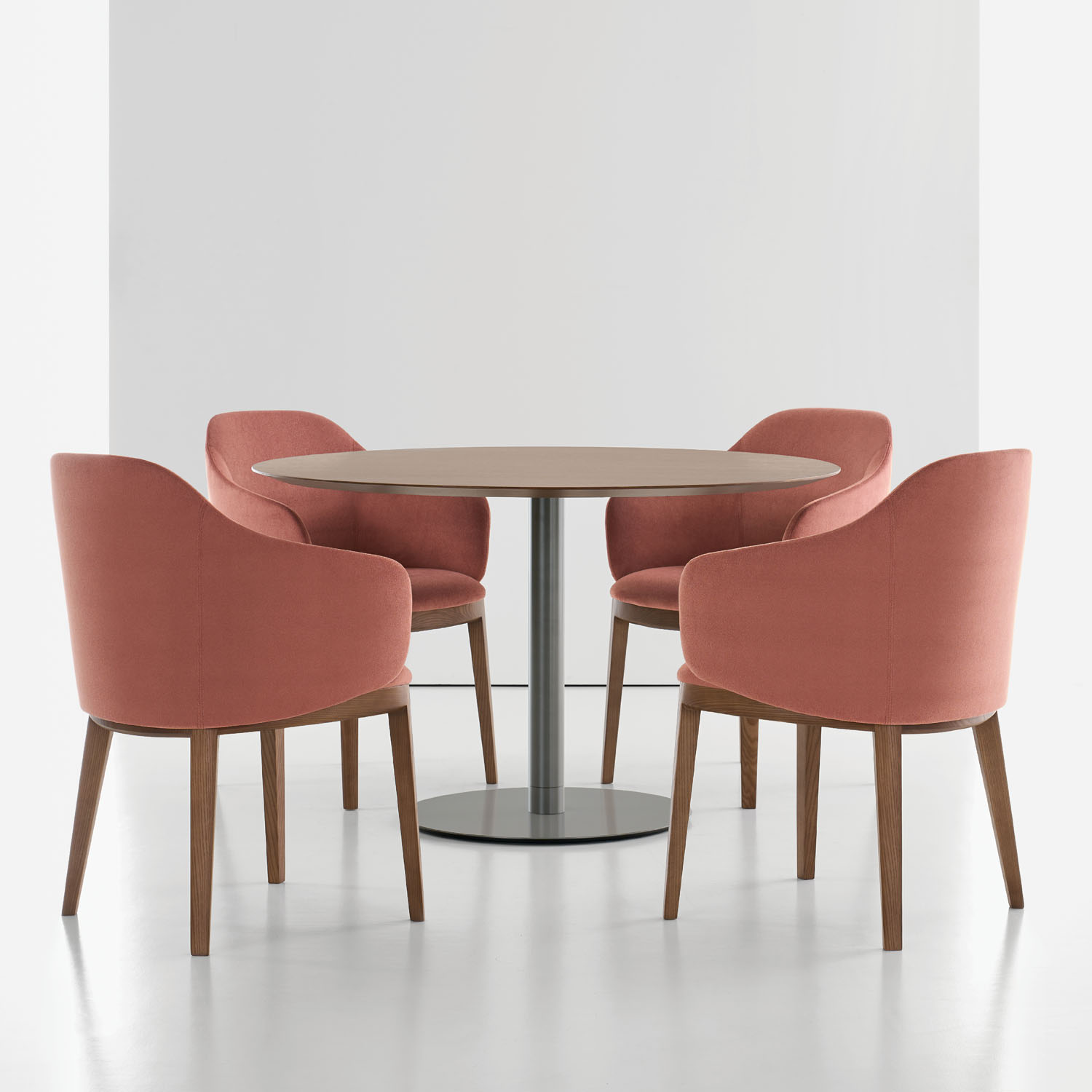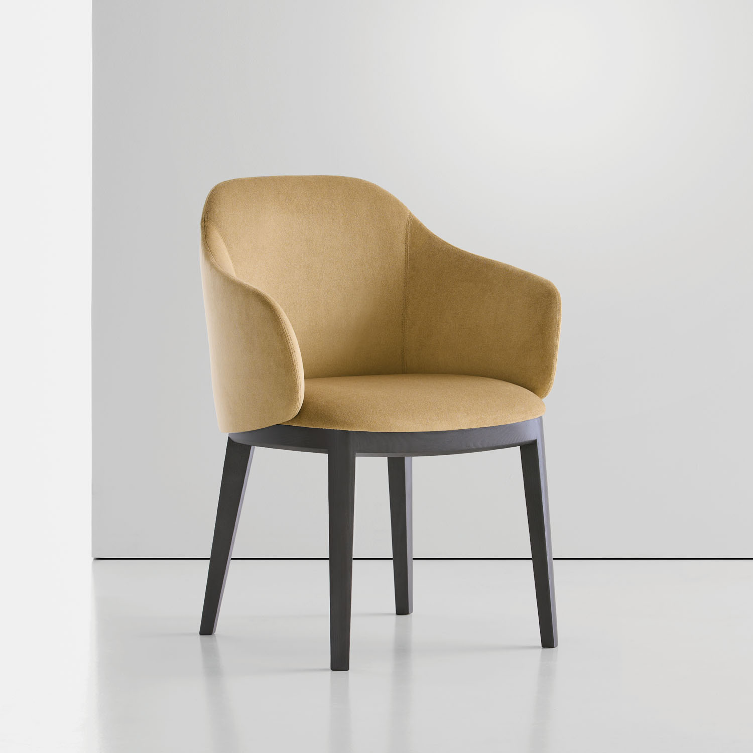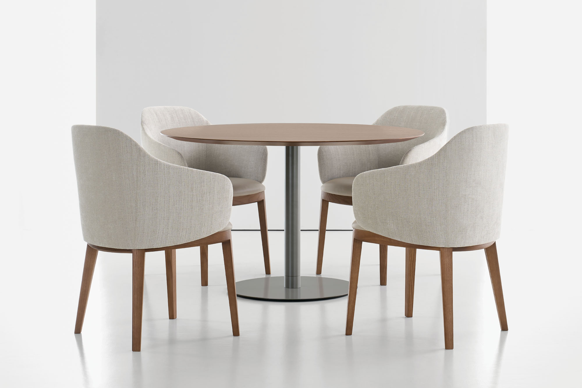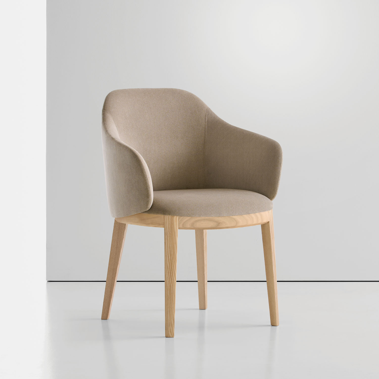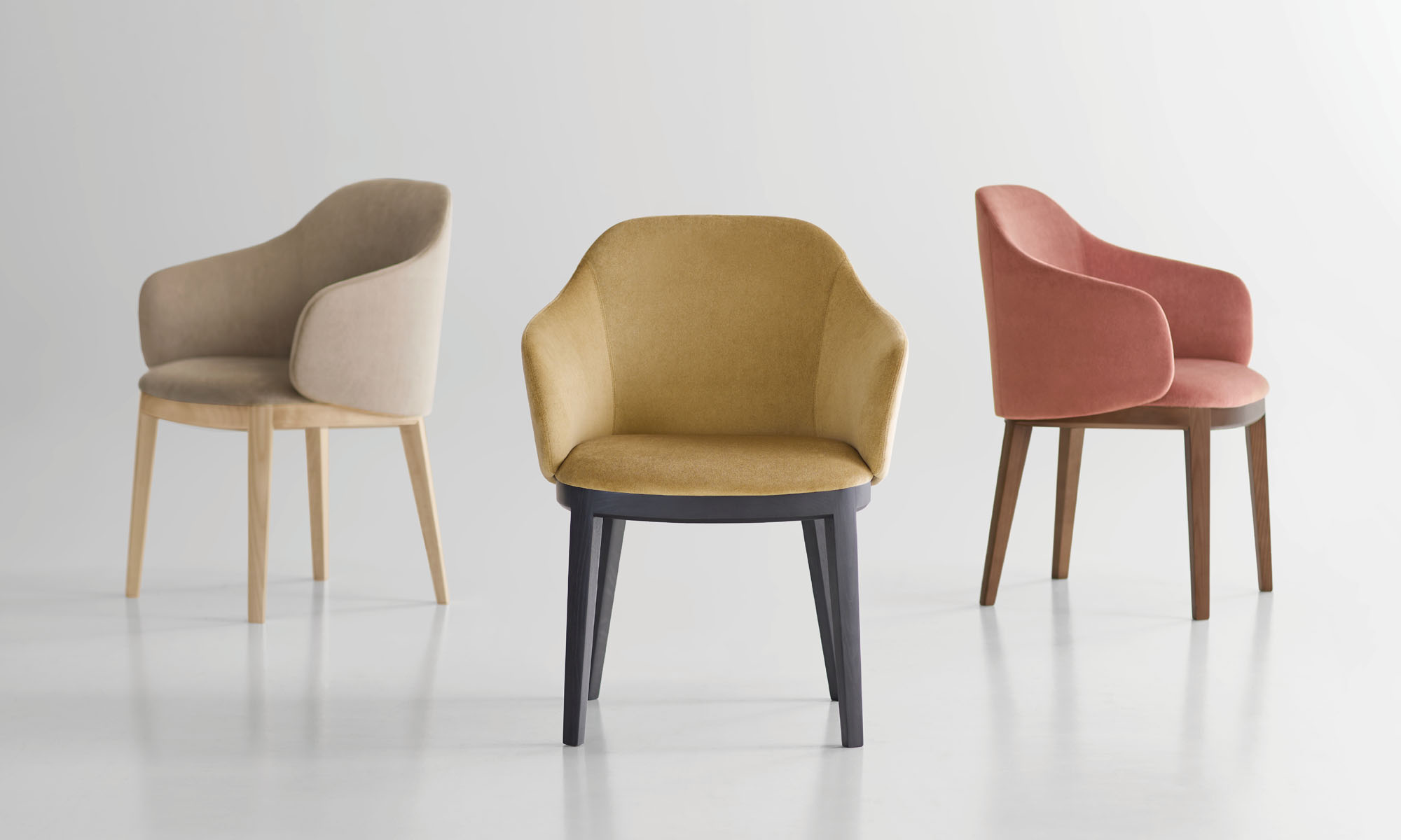 Part of an extensive family of seating, Prelude wood-guest chair is defined by flowing contours and the visual illusion of a gracefully draping shawl, which creates an unexpected profile. Soft curves and a compact scale make it ideal for home offices, cafes, and small meeting rooms.