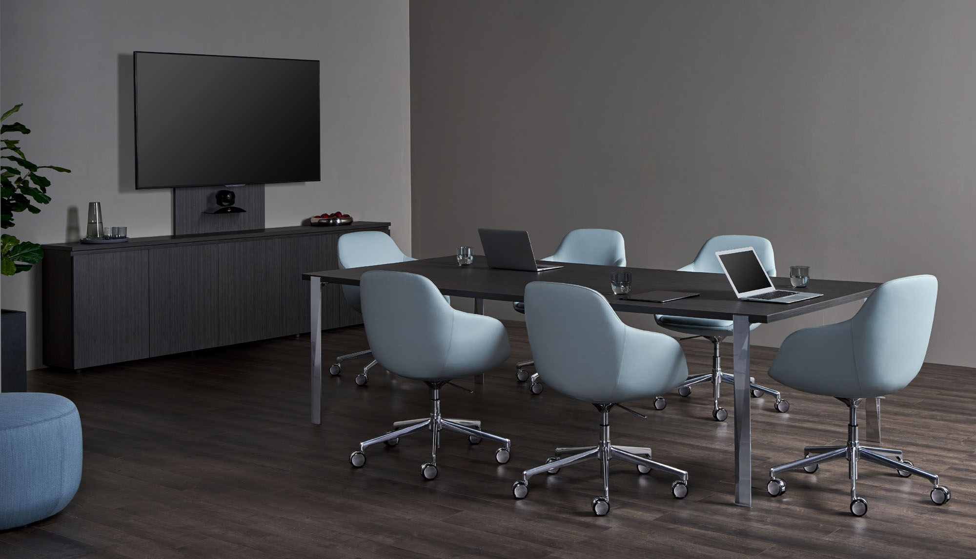 A solution for the modern meeting space, Profile incorporates functionality into a compact credenza. Impressively narrow, the Profile credenza was designed to manage the power and storage needs of huddle rooms, conference rooms, and lounges.