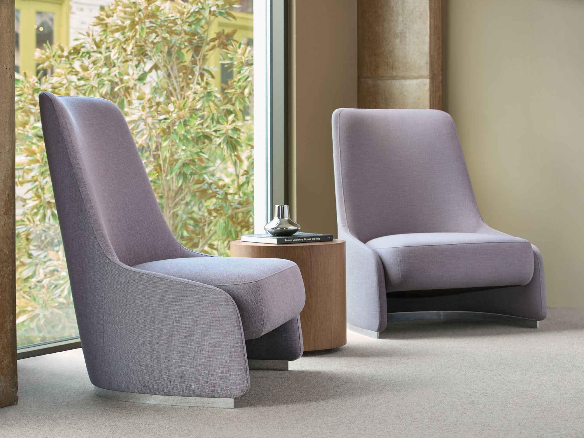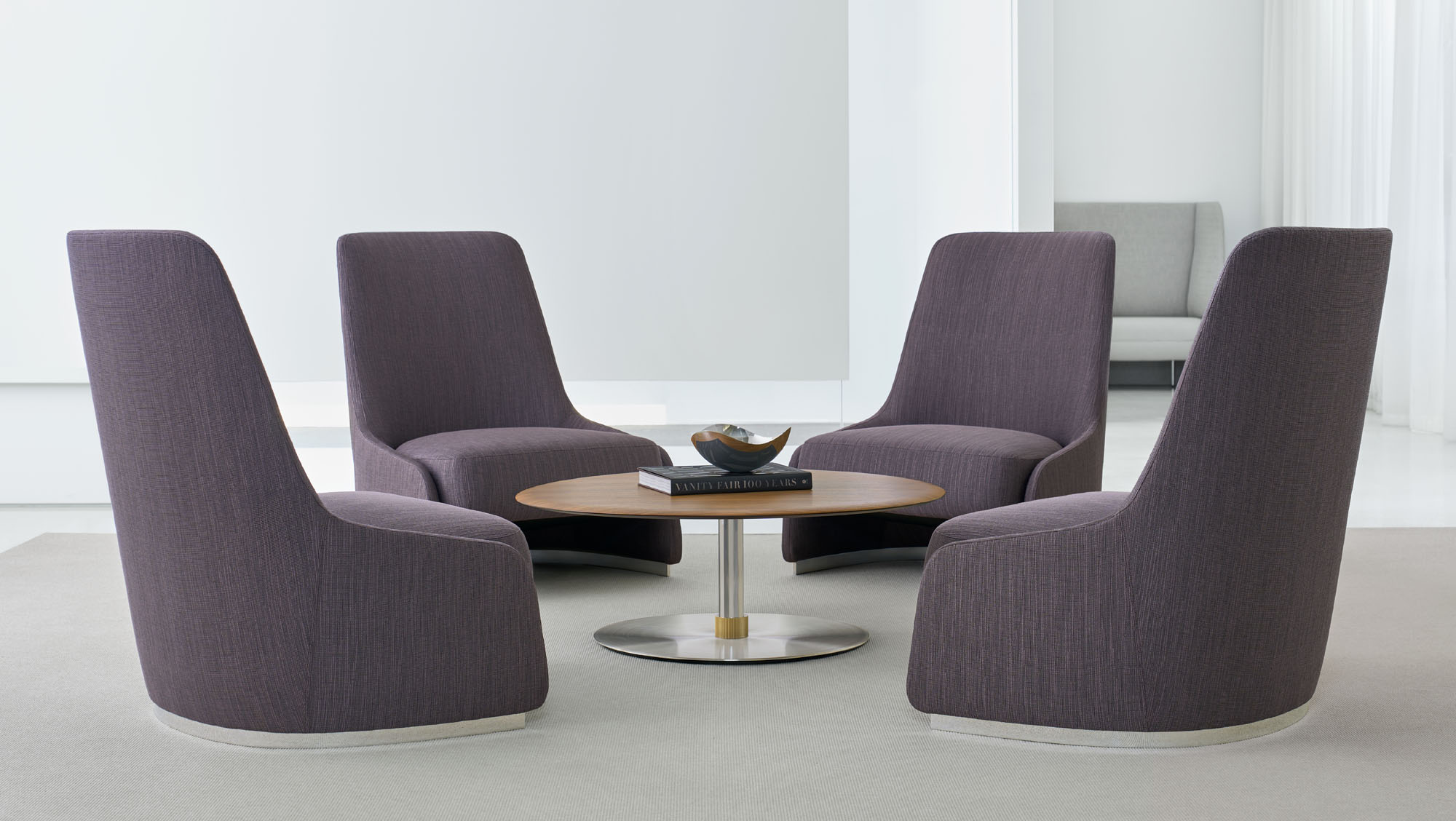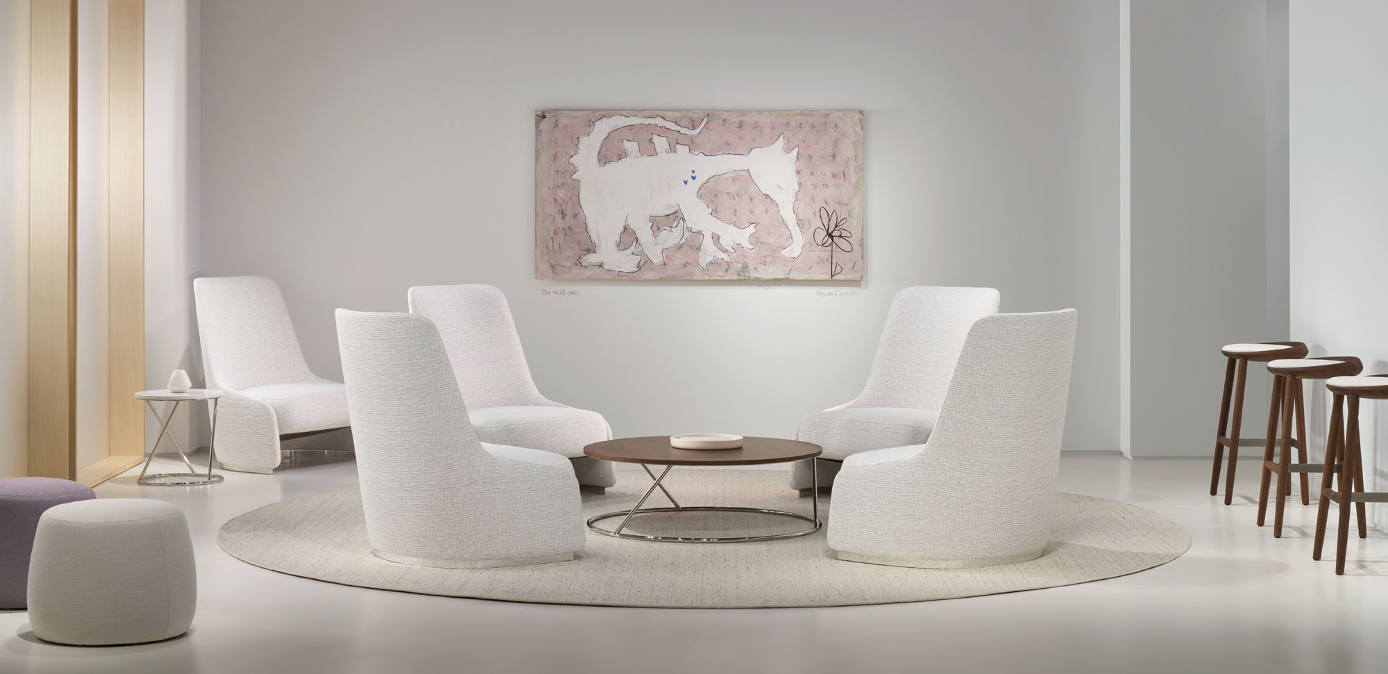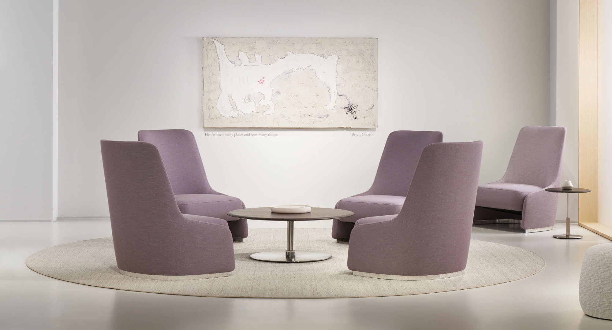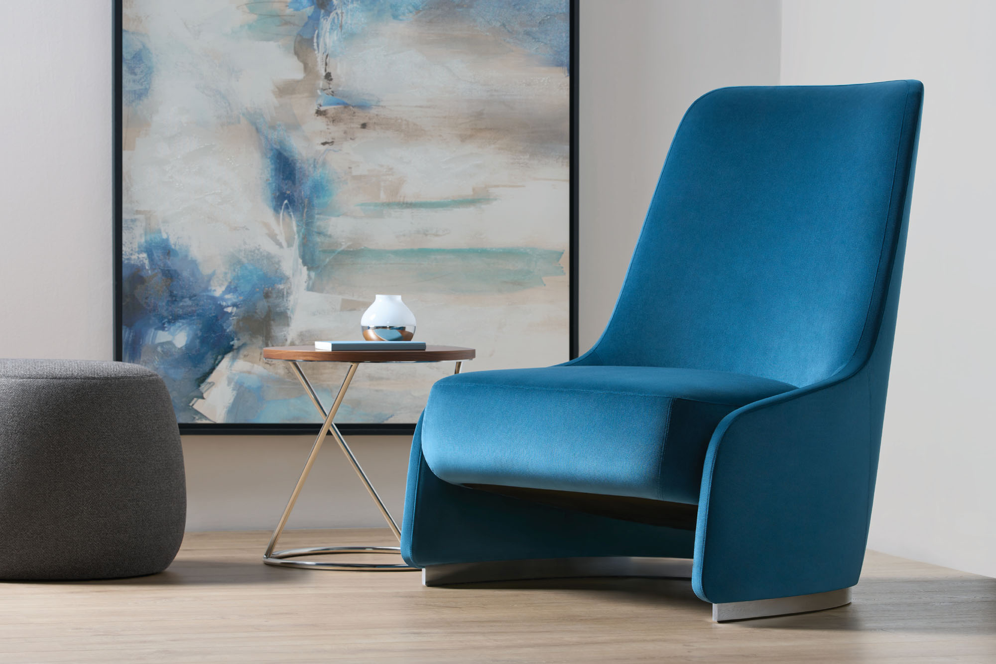 RKC, eponymously named after Terry Crews’ wife Rebecca, is a lounge chair inspired by the silhouette of a perfectly tailored blazer. A distinctive, thin exterior shell serves as the architecture of the lounge, based on one continuous line tracing the chair’s perimeter. RKC’s tall back provides a degree of privacy but is conversely very open and welcoming. A generously scaled seat adds visual weight and is soft and inviting.