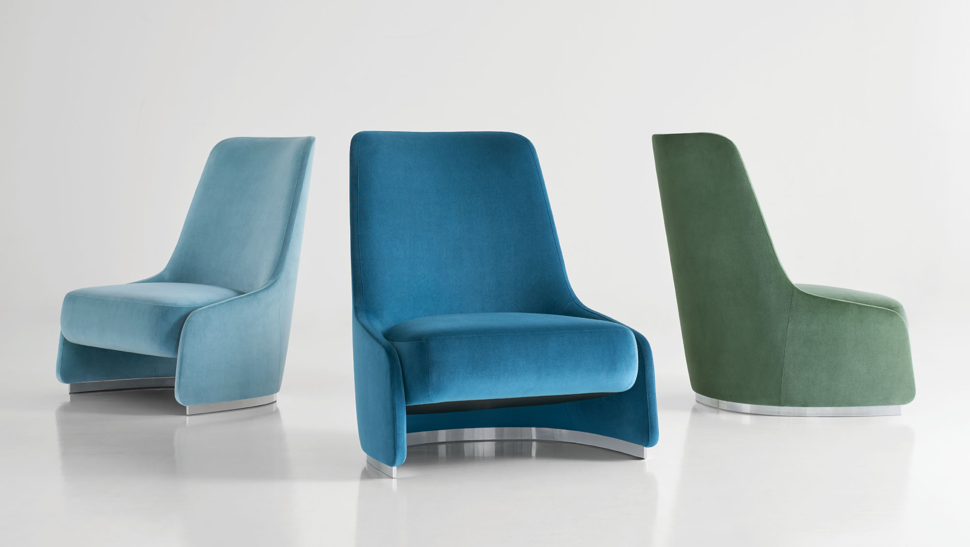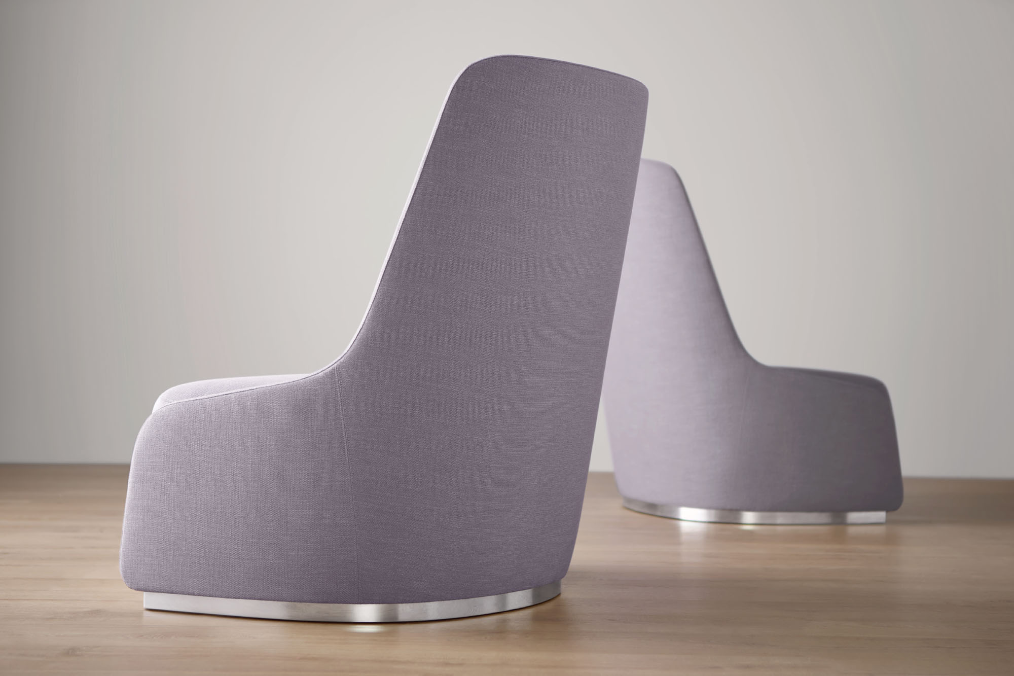 The RKC base changes appearance as you move around the chair, revealing more metal from different perspectives. It is offered in polished aluminum or powder coat colors.