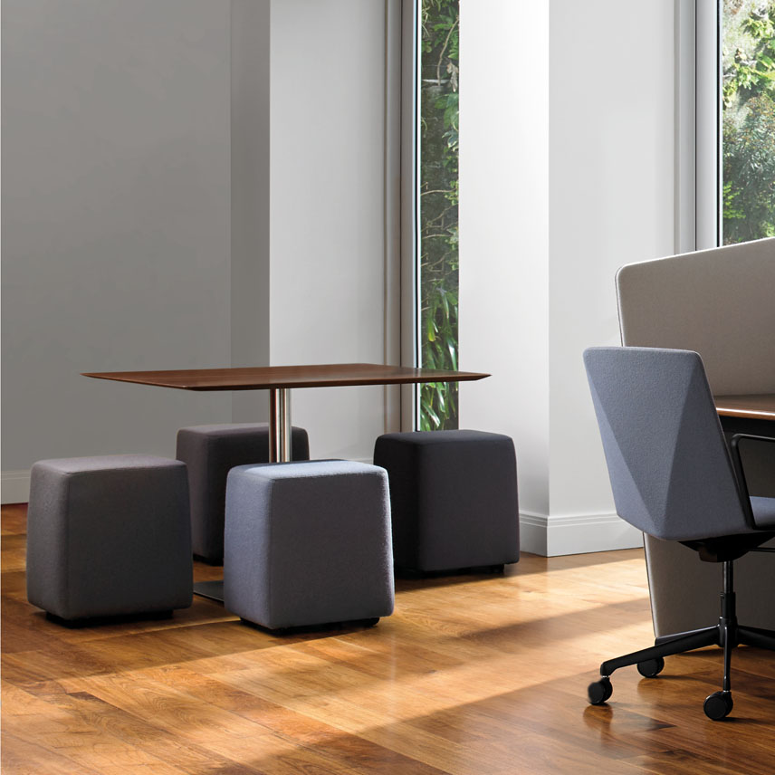 Stay offers a compact and modern solution for mobile seating in any location. The fully upholstered, standard seat height ottoman features angular lines and a supple seat with a small footprint.