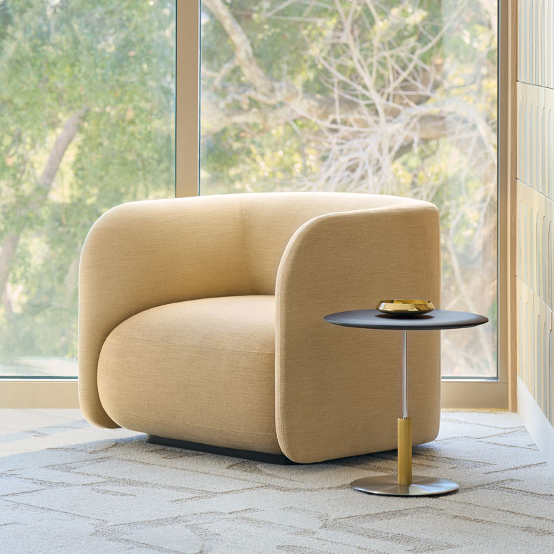 The Sunset lounge, part of a larger modular seating system, effortlessly blends vintage inspiration with modern design. Drawing on the vibrant energy of California’s Sunset Strip, it captures the spirit of the ’60s and ’70s while remaining entirely relevant today. The design is characterized by large, rounded corners that create a bold, graphic presence. Generous seat cushions nod to Italian Post-War molded foam furniture, offering a casual, laid-back feel perfect for lounging. The elegant seat and back are highlighted by precise tailoring made possible by today’s craftsmanship. In this way, the Sunset lounge manages to feel both familiar and refreshingly new.