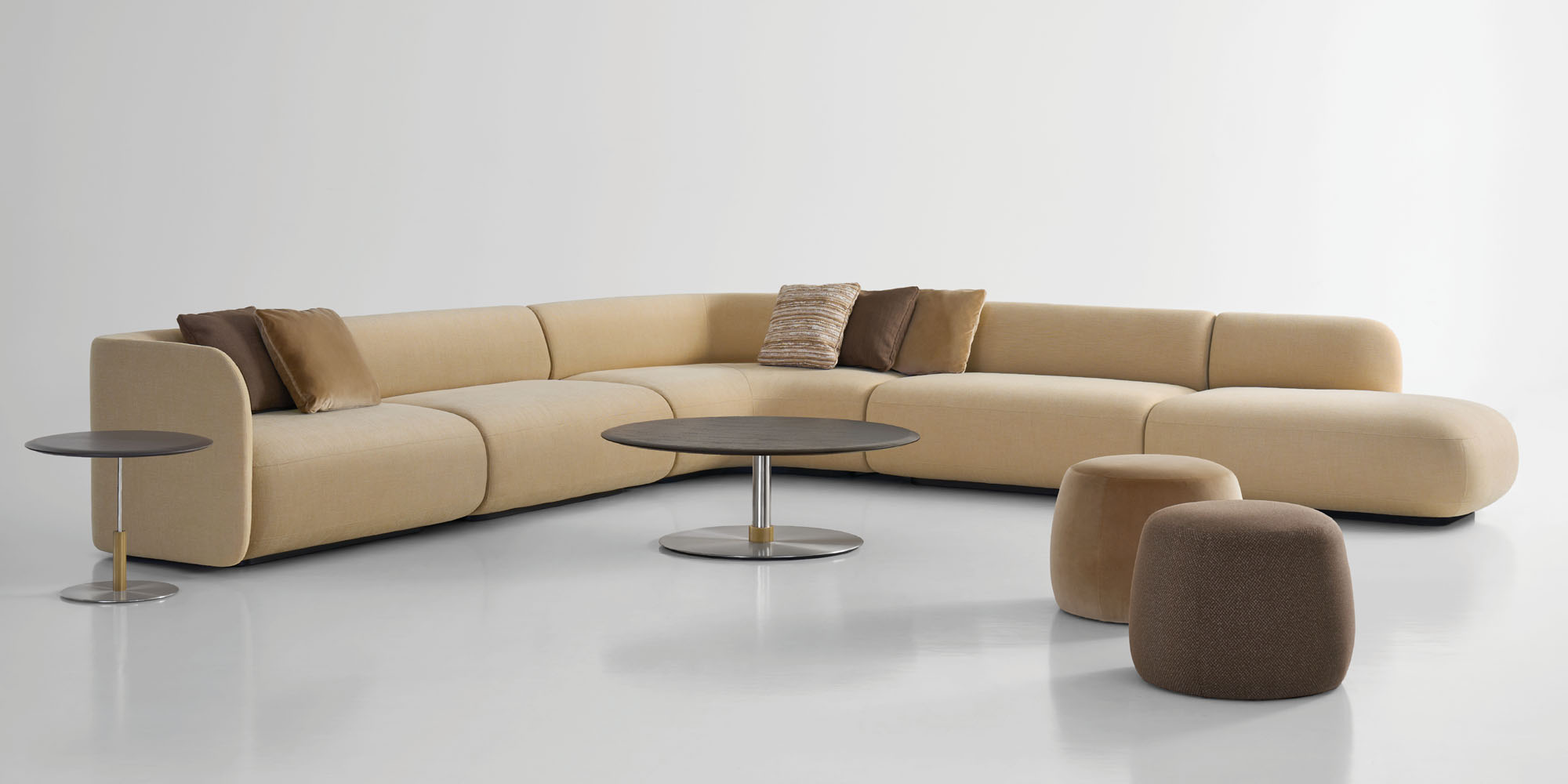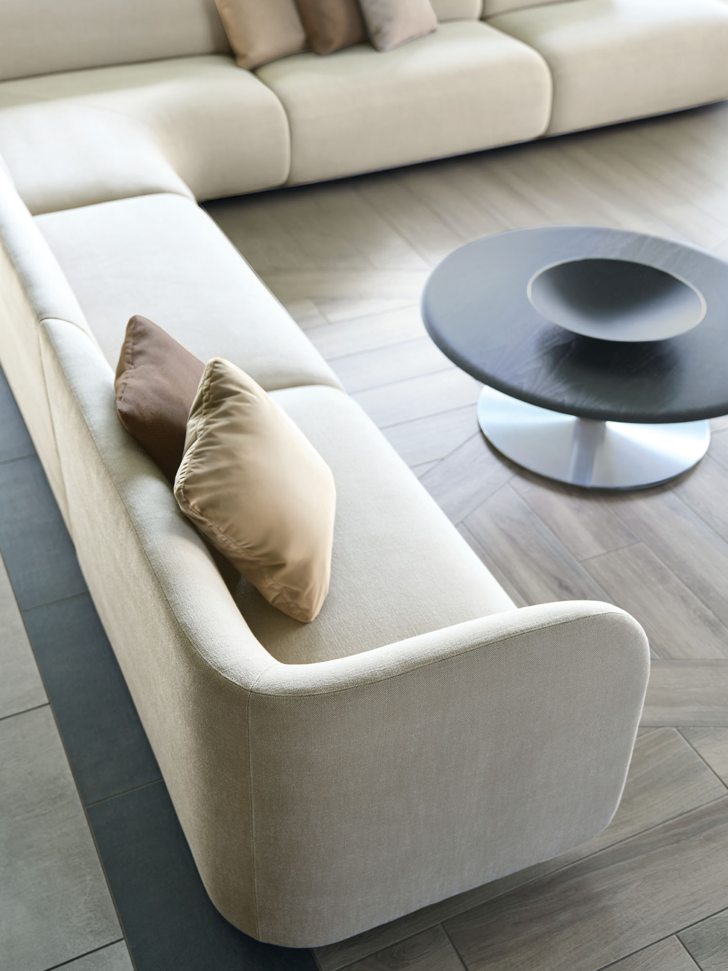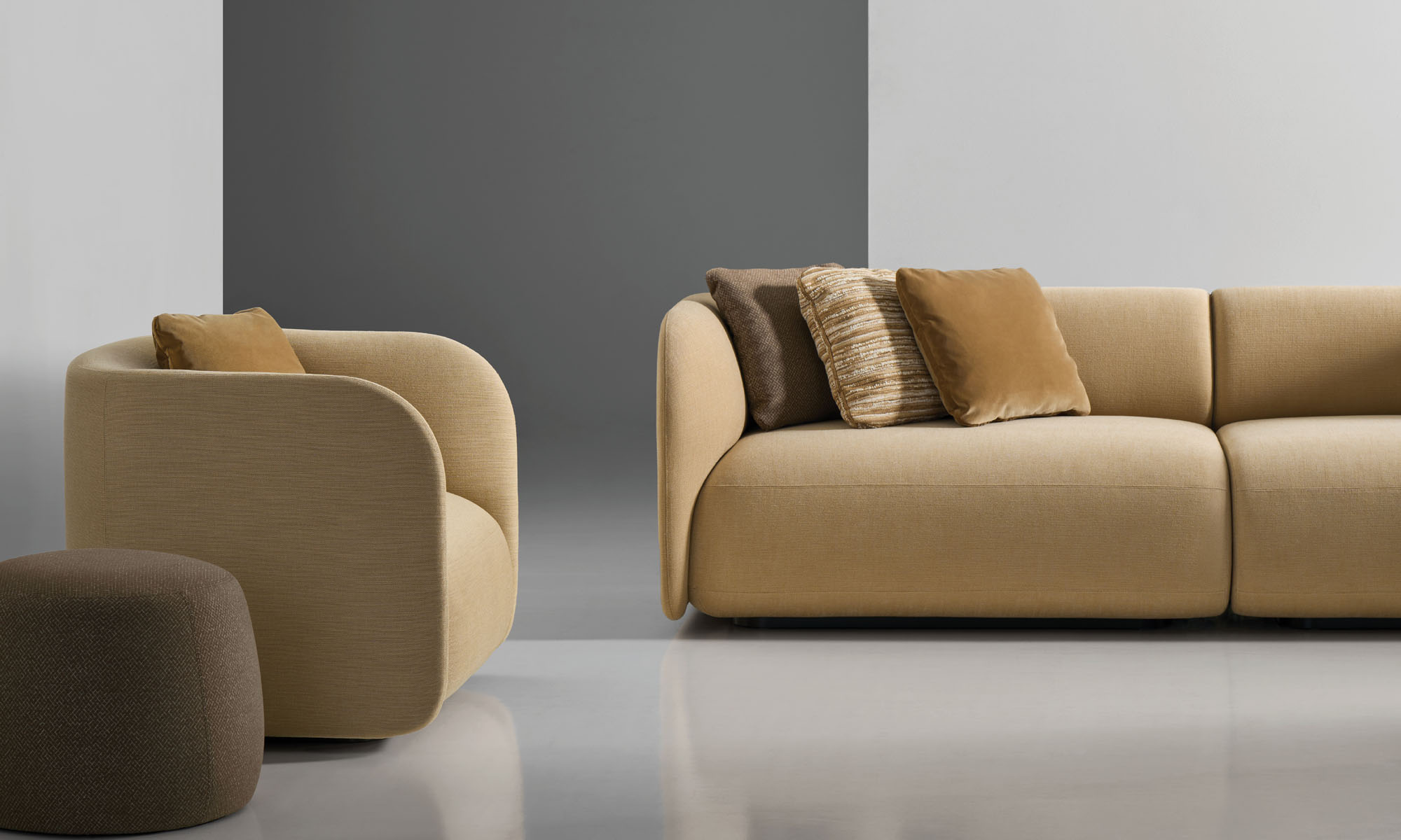 The Sunset modular seating system effortlessly blends vintage inspiration with modern design. Drawing on the vibrant energy of California’s Sunset Strip, it captures the spirit of the ’60s and ’70s while remaining entirely relevant today. The design is characterized by large, rounded corners that create a bold, graphic presence. Generous seat cushions nod to Italian Post-War molded foam furniture, offering a casual, laid-back feel perfect for lounging. The elegant seat and back are highlighted by precise tailoring made possible by today’s craftsmanship. In this way, Sunset manages to feel both familiar and refreshingly new.