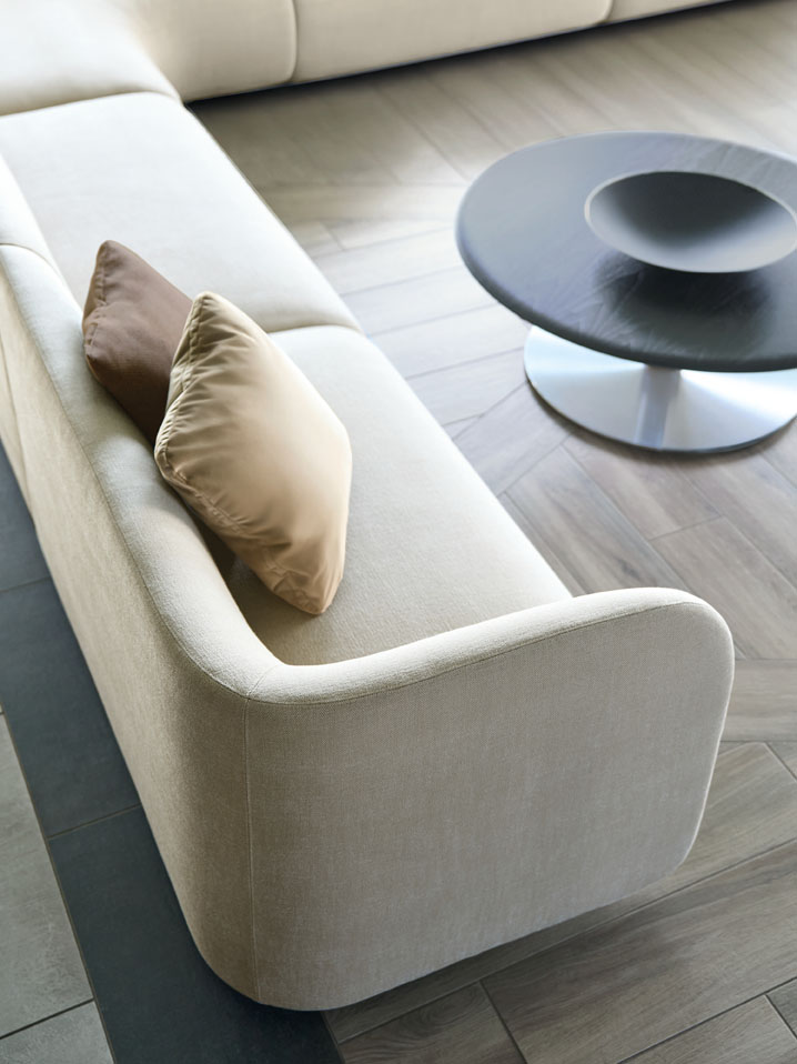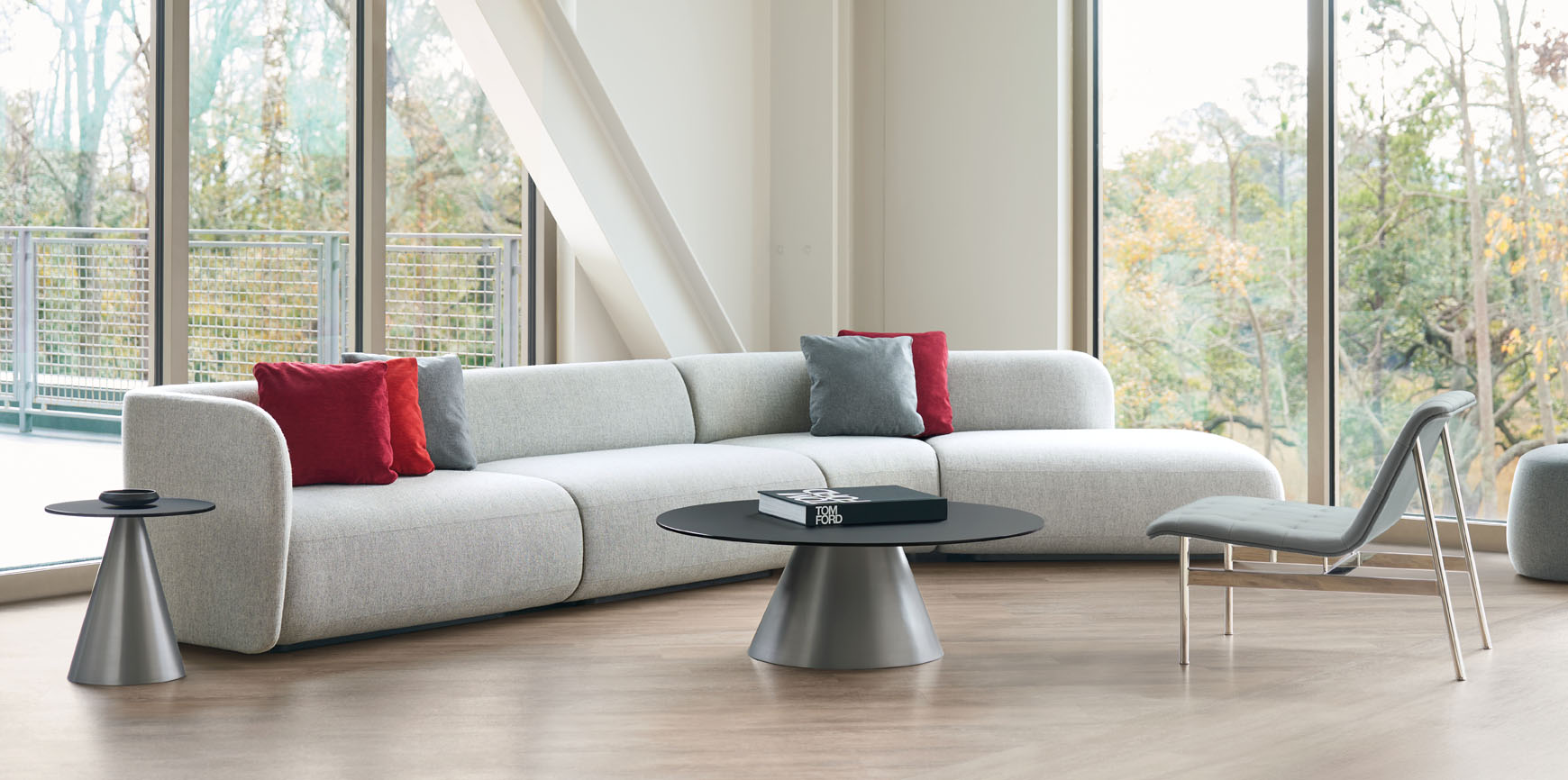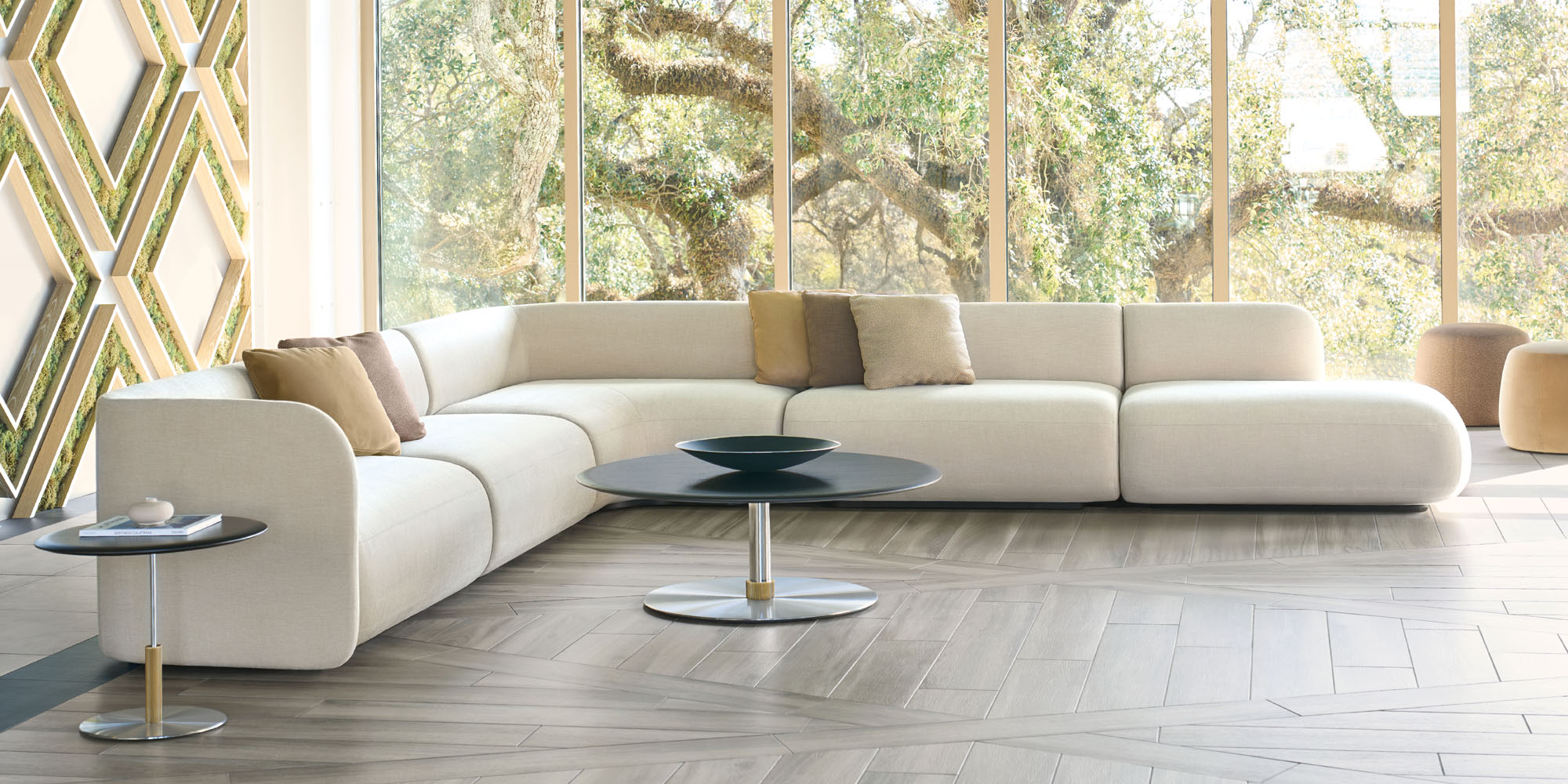 The Sunset modular seating system effortlessly blends vintage inspiration with modern design. Drawing on the vibrant energy of California’s Sunset Strip, it captures the spirit of the ’60s and ’70s while remaining entirely relevant today. The design is characterized by large, rounded corners that create a bold, graphic presence. Generous seat cushions nod to Italian Post-War molded foam furniture, offering a casual, laid-back feel perfect for lounging. The elegant seat and back are highlighted by precise tailoring made possible by today’s craftsmanship. In this way, Sunset manages to feel both familiar and refreshingly new.