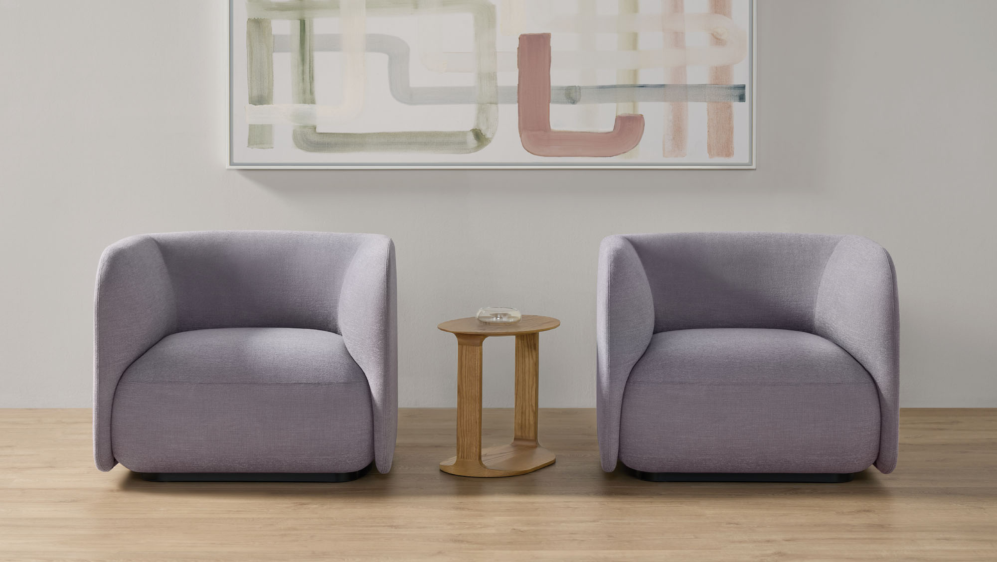 Fully upholstered, Sunset offers contrasting textile options for the back and seat for easy customization.